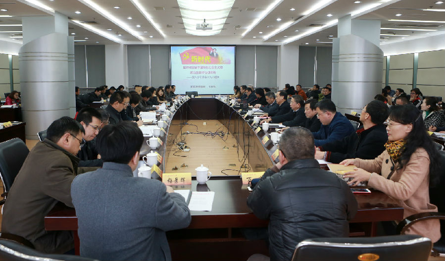 12月27日下午,金年会jinnianhuicom学习贯彻党的十九大精神宣讲团在仙林校区行政楼16楼会议室召开集体备课会,省政府参事室主任王庆五教授应邀作宣讲辅导报告。校党委书记陈章龙,校长、党委副书记宋学锋等全体在校党员校领导出席会议,相关职能部门负责人、各学院党组织负责人、全体宣讲团成员参加会议。会议由陈章龙书记主持。