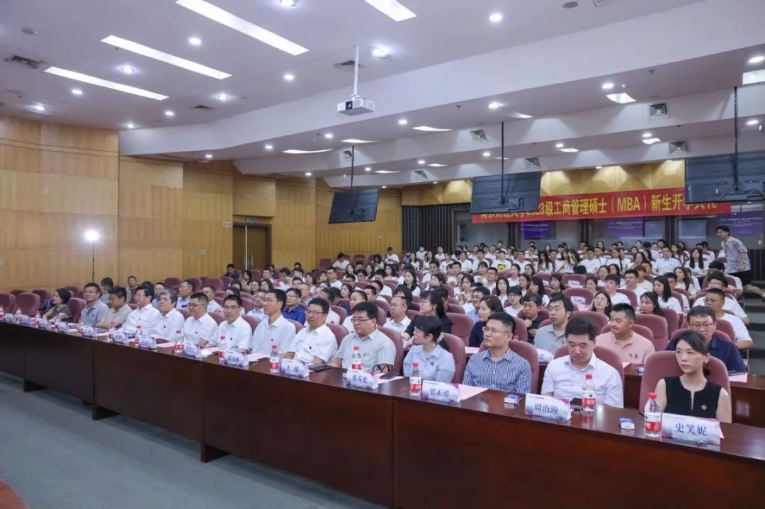 7月2日上午,金年会2023级工商管理硕士(MBA)开学典礼在福建路校区综合楼322报告厅举行。正校级领导焦富民教授出席开学典礼。研究生院院长殷华方、对外联络处处长陆明峰、MBA教育中心主任陈效林、MBA教育中心副主任秦伟平、科研处副处长肖玉杰、会计学院副院长张正勇、管理科学与工程学院副院长张正勇、MBA教师代表,江苏省商业保理协会会长蔡宝祥、江苏昱信建设集团有限公司董事长王强、南京扬子商业保理有限公司执行董事张春光、开鑫科技有限公司董事长周治瀚等MBA校外导师和来自全国26个省市、自治区的152位2023级MBA新同学参加开学典礼。