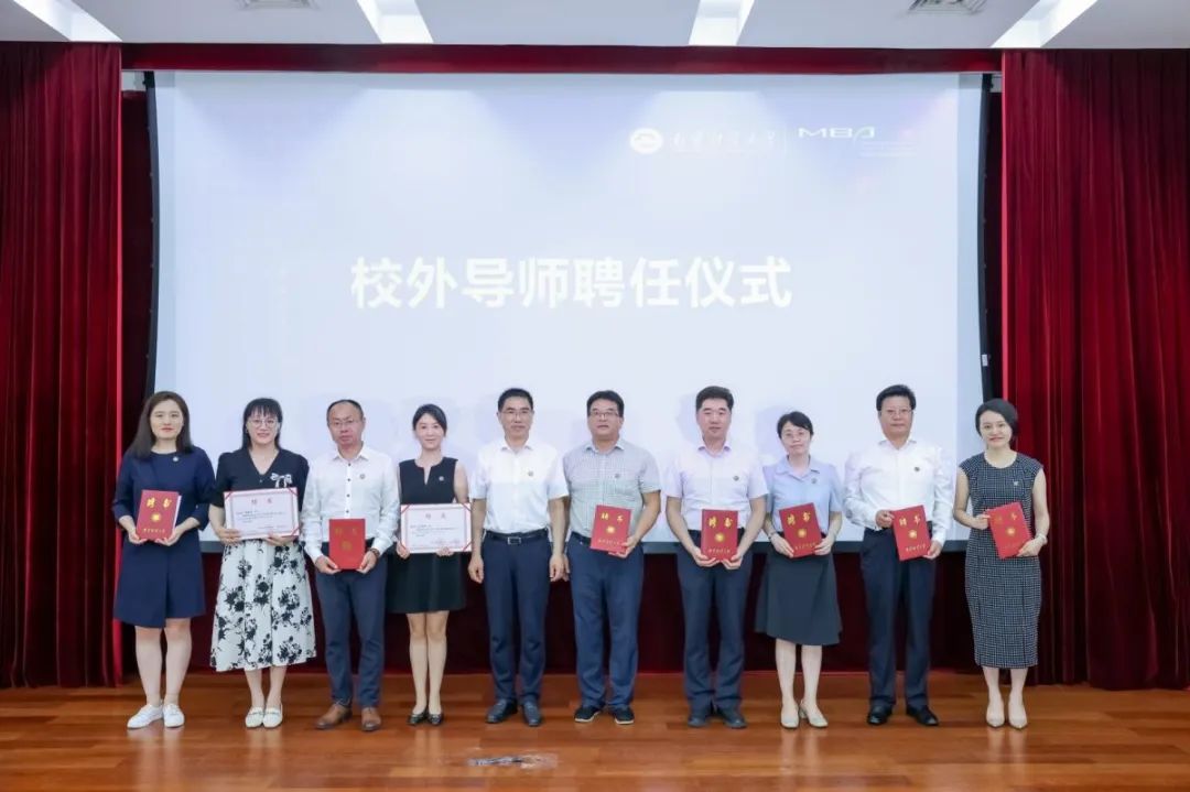 在校外导师聘任仪式上,焦富民教授为MBA行业导师颁发聘书,殷华方院长、陆明峰处长、陈效林主任分别为MBA校友导师颁发聘书。本次开学典礼共有9位政企高管被聘任为MBA行业导师,15位优秀校友被聘任为MBA校友导师。