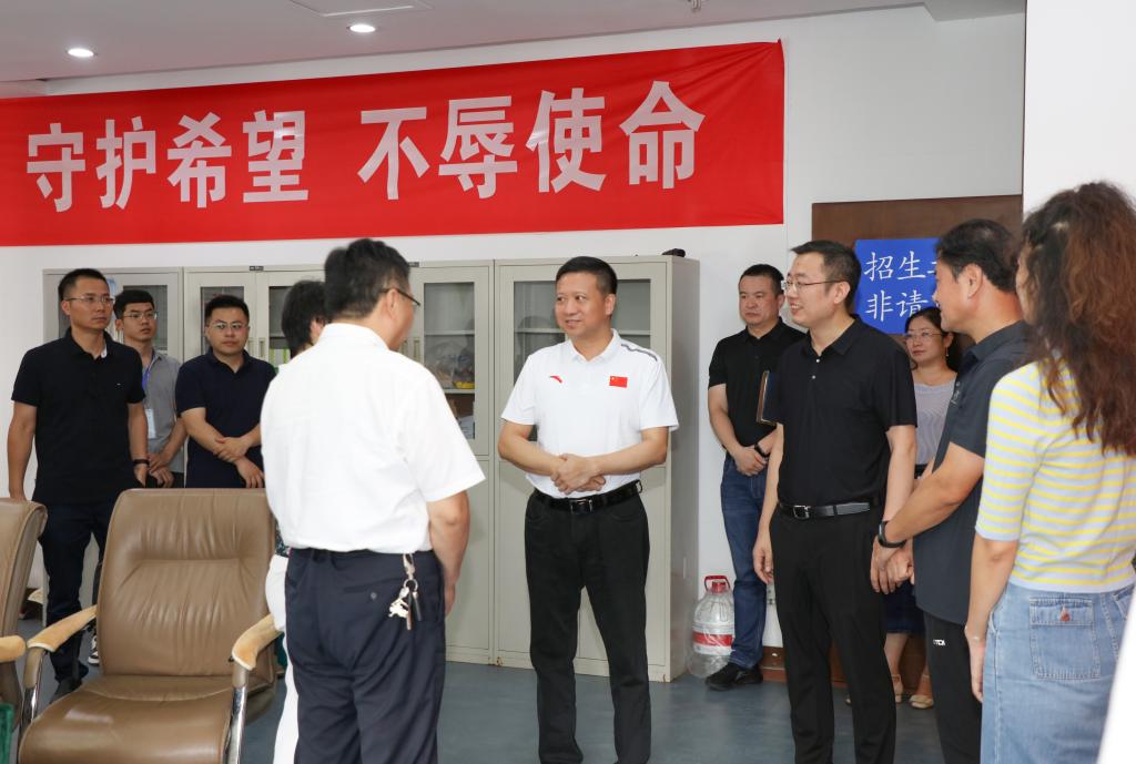 在行政楼大厅,张利民书记与值班人员一一握手,热情交谈,详细了解暑期值班值守安排,叮嘱大家要以高度的责任感、饱满的热情和良好的精神风貌,继续做好值班值守工作,履行好岗位职责。