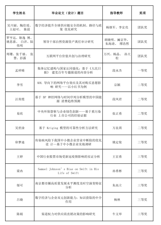 近日,省教育厅公布了《省教育厅关于公布2022 年度普通高等学校 优秀本专科毕业论文(设计)评定结果的通知》(苏教评函〔2023〕2 号)。金年会获团队优秀毕业论文(设计)3项,单篇优秀毕业论文(设计)一等奖1项、二等奖4项、三等奖6项。
