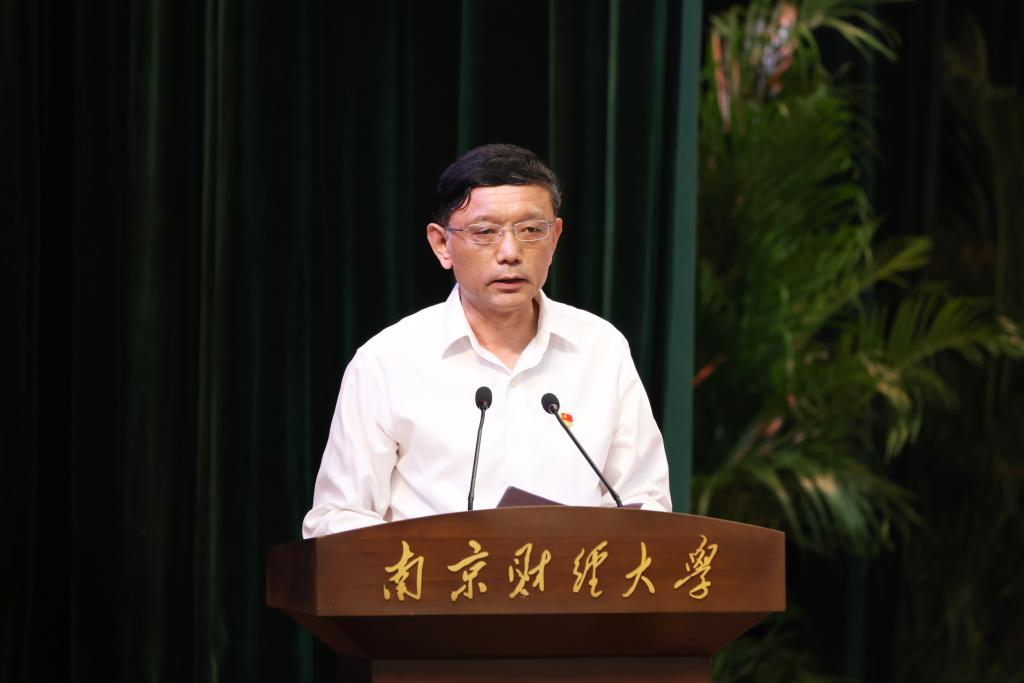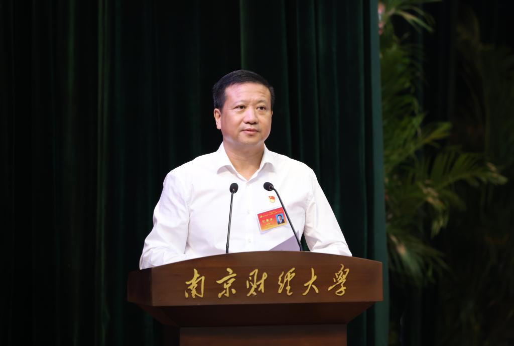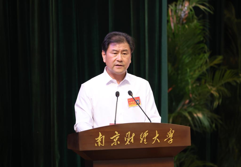 张利民书记代表中共金年会jinnianhuicom第三届委员会作题为《抢抓机遇 敢为人先 为加快建设全国一流的省属财经类大学而努力奋斗》的工作报告。张利民书记强调,本次大会的主题是:高举中国特色社会主义伟大旗帜,以习近平新时代中国特色社会主义思想为指导,全面贯彻党的二十大精神、习近平总书记关于高等教育的重要论述和对江苏工作的重要讲话精神,团结带领全校师生员工,围绕立德树人根本任务,深化综合改革,强化内涵建设,推动高质量发展,抢抓机遇,敢为人先,踔厉奋发,勇毅前行,为加快建设全国一流的省属财经类大学而努力奋斗。