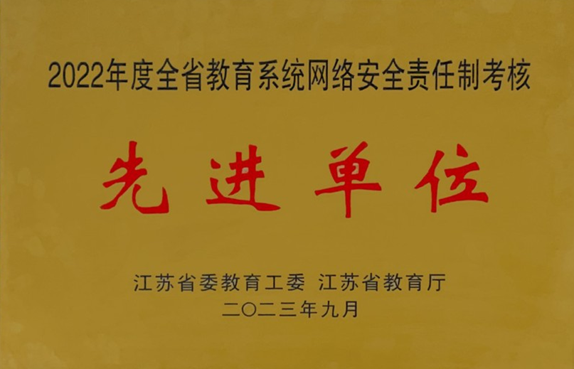 此次获评“江苏省教育系统网络安全责任制考核先进单位”,是继获评“2022年江苏省智慧校园示范校”之后,省委教育工委和省教育厅对金年会网络安全和信息化工作的又一次充分肯定。学校将以此为契机,进一步总结建设经验,压实责任,积极面对新技术、新需求,持续增强网络安全保障能力,推进教育数字化建设,提升信息化服务水平,为全面建设社会主义现代化国家、全面推进中国式现代化江苏新实践贡献更大金年会智慧和力量。