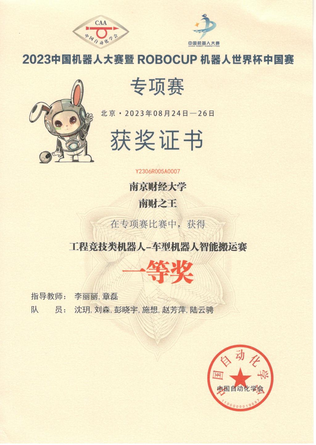 金年会学生团队在中国机器人大赛暨RoboCup机器人世界杯中国赛专项赛中获得一等奖