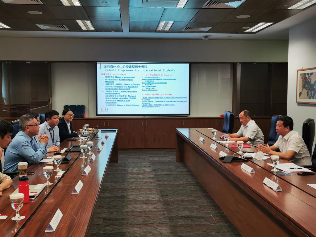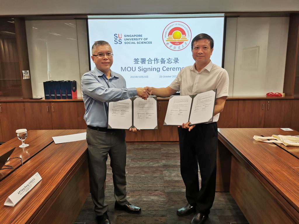 在访问新加坡新跃社科大学期间,新跃社科大学常务副校长吴文华、助理副校长陈明礼、研究生处副处长李伟雄、研究生办公室副主任方峥、商学院副院长李德发、金融硕士课程主任于映辉、数字营销硕士课程主任蒋志莺、管理硕士课程主任Amy Wong出席会谈。张利民书记表示,两校专业设置相似,在金融管理、数字经济、健康经济等领域可以深入开展国际人才联合培养,构建教师互访机制,共建科研合作平台等方面的合作。吴文华副校长对金年会jinnianhuicom代表团的访问表示欢迎,并表示愿与金年会jinnianhuicom探索更加多元的合作路径。代表团就双方在数字营销、多元金融、养老保障等领域开展硕士生联合培养项目与新跃社科大学相关负责人进行了深入沟通和交流。张利民书记与吴文华副校长共同签署了合作备忘录。
