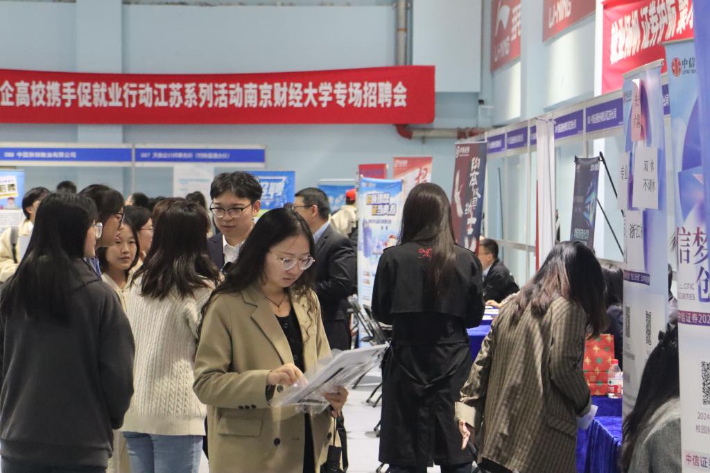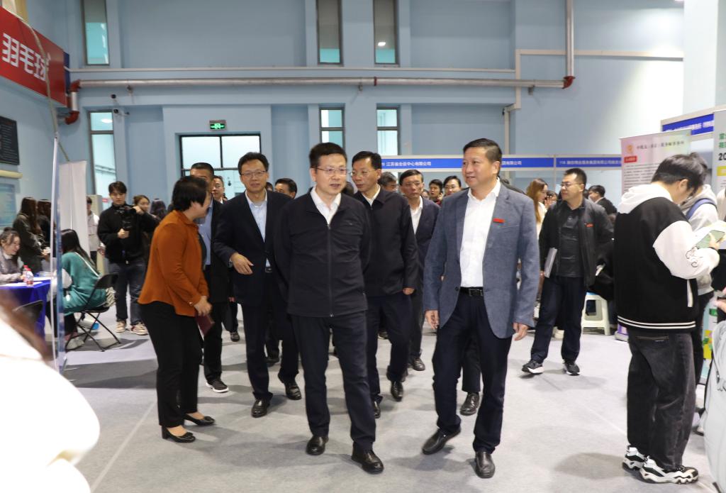 为贯彻落实党中央、国务院关于高校毕业生就业工作的决策部署,保障2024届毕业生高质量充分就业,11月10日下午,江苏省2024届高校毕业生秋季校园招聘月金融、商贸及现代服务业暨“百城万企”民企高校携手促就业行动江苏系列活动专场招聘会在仙林校区体育馆举办。此次招聘会由江苏省教育厅、江苏省人力资源和社会保障厅、江苏省工商联主办,江苏省高校招生就业指导服务中心、江苏省劳动就业管理中心、江苏省职业介绍中心、南京市工商联和金年会承办。全国工商联副主席方光华,教育部高校学生司(高校毕业生就业服务司)副司长吴爱华,人力资源社会保障部就业促进司副司长宋鑫,全国工商联社会服务部副部长陆红军,中国人事科学研究院就业创业与政策评价研究室主任庞诗,江苏省委统战部副部长、省工商联党组书记刘军,江苏省委教育工委副书记、省教育厅党组成员潘漫,江苏省人力资源和社会保障厅副厅长张宏伟,金年会党委书记张利民,党委常委、副校长赵国栋,江苏省总商会副会长、南京银都奥美广告有限公司董事长张丽出席会议。全国工商联促就业专题调研组同志,省教育厅、省人社厅处室负责同志,省高校招生就业指导服务中心、省人才流动服务中心负责同志现场巡查了招聘会。
