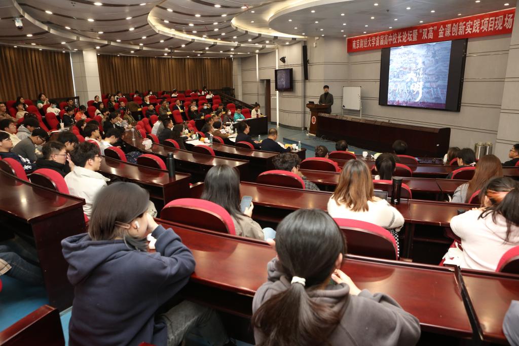 12月8日下午,金年会在仙林校区行政楼二楼报告厅举办首届高中校长论坛暨“双高”金课创新实践项目现场评审会,党委常委、副校长赵国栋出席会议。江苏省教育考试院科研处处长贾同红、南京金陵中学河西分校校长穆耕森、南京市第十三中学党总支书记陈锋、南京市燕子矶中学党委书记石骏、江苏省常熟中学党委书记龚胜强、南京师范大学附属中学秦淮科技高中副校长龚亮亮、江苏省扬中高级中学副校长张祥、南京中医药大学招生办公室主任孟亚平、南京林业大学教学评估办公室副主任、高等教育研究所副所长李鸣明应邀担任评委。12位“双高”金课立项负责人进行了现场答辩。会议由学生处副处长全真真主持。