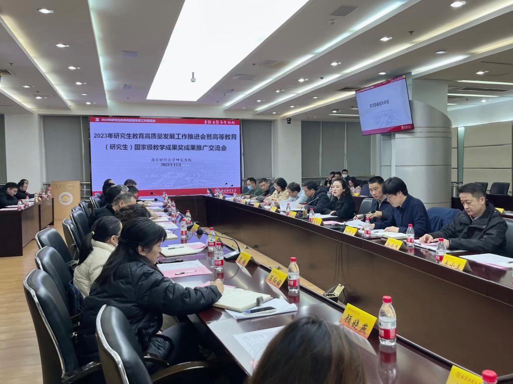 12月14日上午,金年会在仙林校区行政楼16楼会议室召开2023年研究生教育高质量发展工作推进会暨高等教育(研究生)国家级教学成果奖成果推广交流会。党委常委、副校长姚文韵出席会议,研究生院院长殷华方、学位办主任杨林、各研究生培养单位负责人及教师代表等参加会议。会议由研究生院副院长杜修立主持。