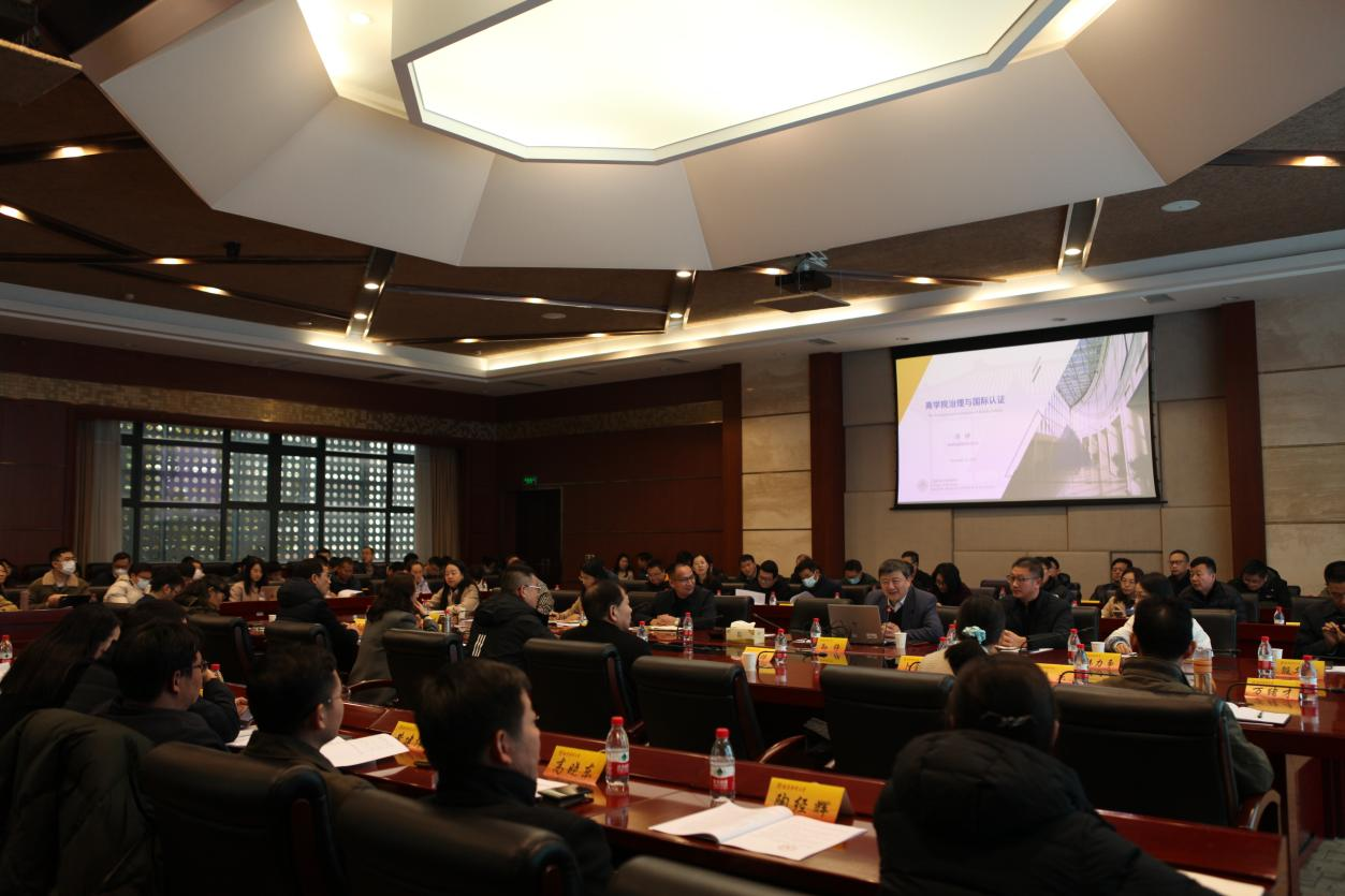 12月14日上午,金年会在仙林校区工科楼二楼会议室召开以认证为导向的2024版人才培养方案修订推进会,上海财经大学原副校长、资深教授孙铮作题为“商学院治理与国际认证”的讲座。党委常委、副校长叶林祥主持会议并讲话。学生处、研究生院、评估及质量监控中心、国际合作与交流处、MBA教育中心、团委等职能部门主要负责人,教务处全体领导以及各教学院(部)党委书记、院长、分管教学工作的副院长、系主任参加会议。