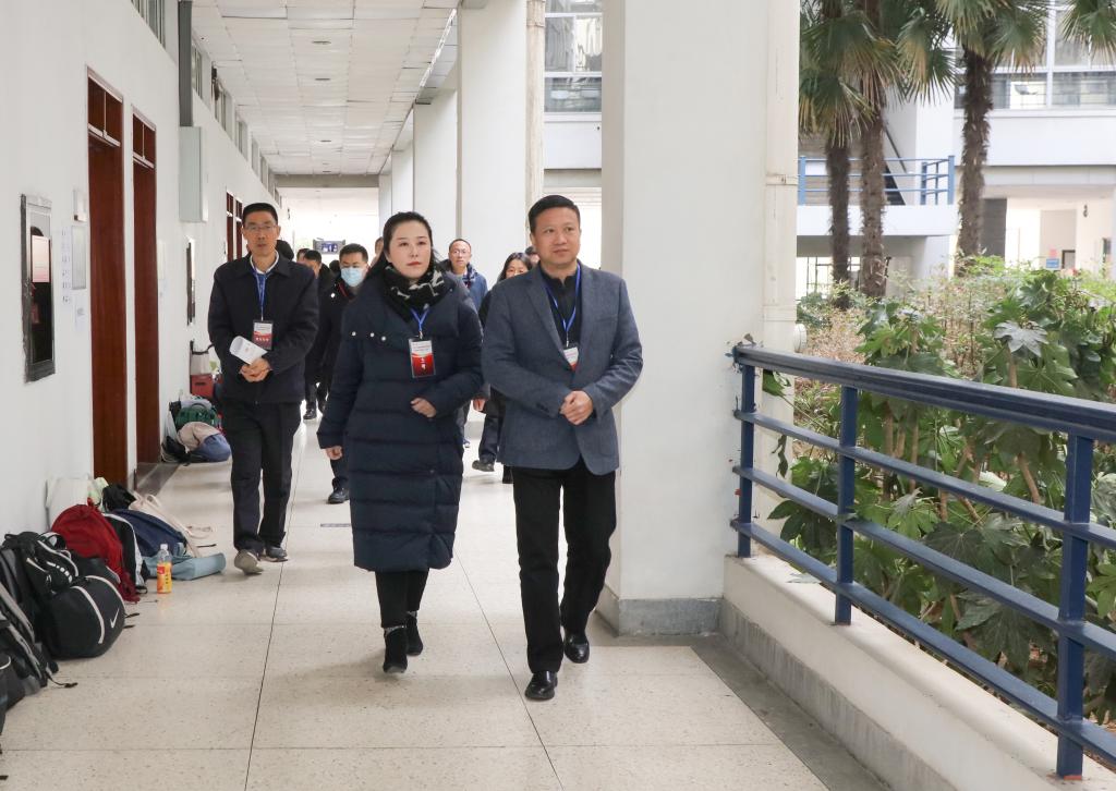 校领导重点检查了考场布置、监考教师及考务人员操作、视频监控、考生入场安检等环节工作的开展情况,详细了解考生到场情况、监考人员监考情况、后勤保障、应急措施以及考点其他安排,并通过视频监控系统察看了各考场的考试情况。校领导对考试组织工作表示充分肯定,对全体工作人员的辛勤付出表示感谢,要求严格落实教育部、教育厅相关考试决策部署,认真细致做好各项考务工作,严肃考风考纪,确保考试公平、公正;细化考点服务工作,确保相关保障工作到位,为考生营造良好的考试环境;做好突发事件应急预案,高效及时处理突发情况,高质量完成本次考试工作。