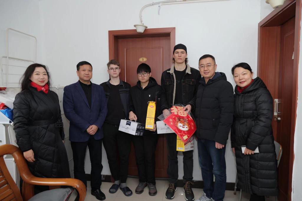 玉兔呈祥辞旧岁,金龙献瑞喜迎春。新春将至,为让在华外国留学生感受家的温暖和中国春节的喜庆氛围,近日,校党委书记张利民,校长程永波,党委常委、副校长赵国栋,党委常委、副校长姚文韵,党委常委、副校长李煜先后看望慰问在校外国留学生,为他们送上节日问候和新春祝福。党委办公室、校长办公室,党委宣传部,保卫处,后勤基建处,国际教育学院等相关部门负责同志陪同慰问。