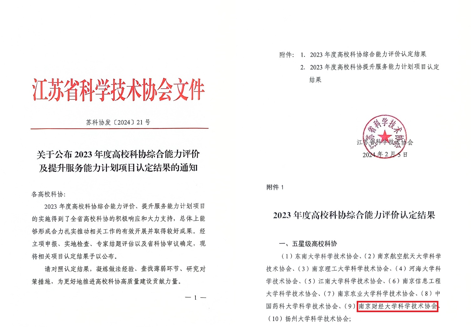 近日,江苏省科学技术协会公布了2023年度高校科协综合能力评价等级结果,金年会科协在全省96所高校科协中脱颖而出,首次获评“五星级高校科协”。