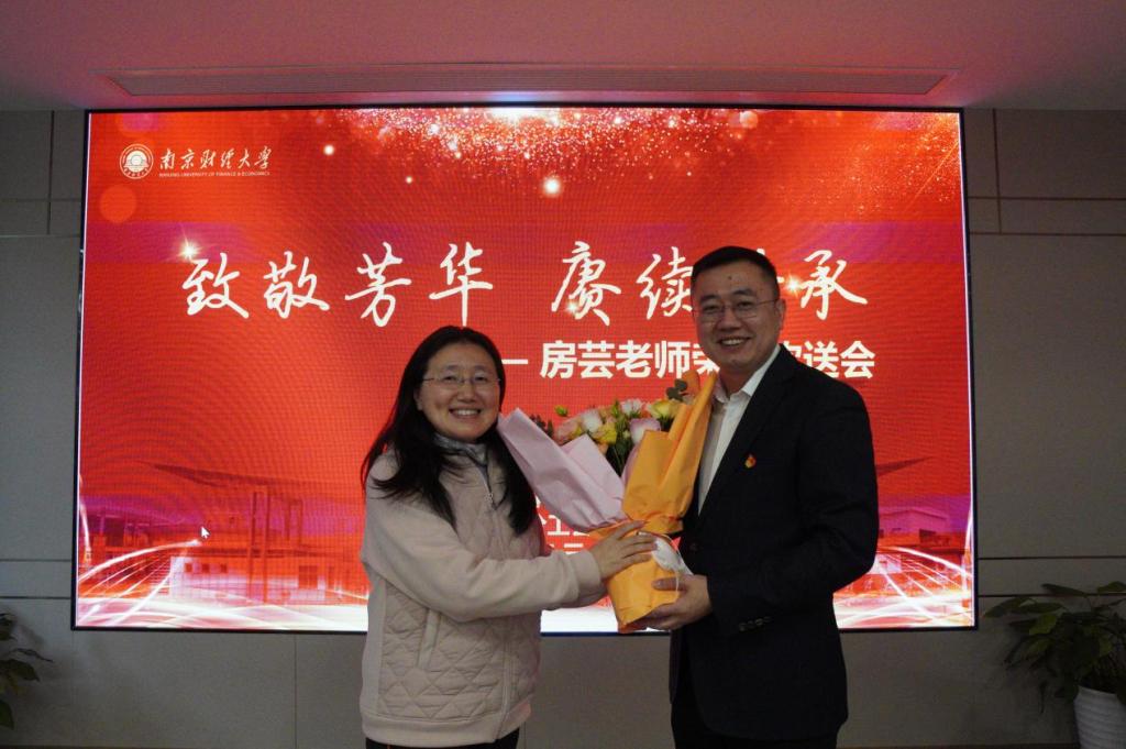 党委常委、副校长赵国栋为房芸老师颁发鲜花