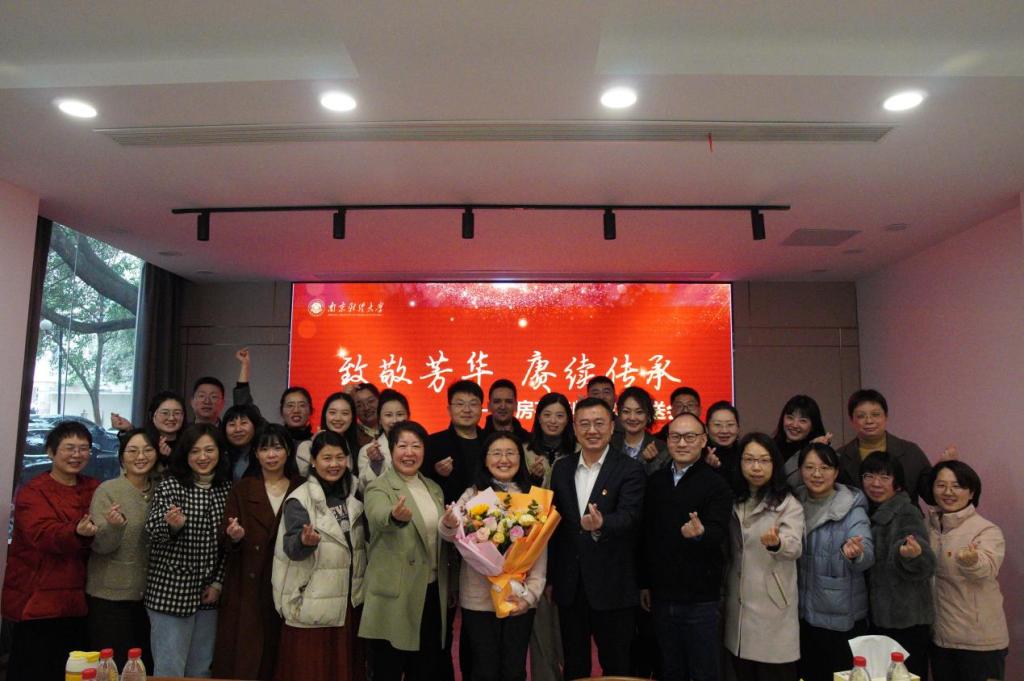 赵国栋副校长作总结讲话,为房芸老师送上鲜花和纪念品,并合影留念。赵国栋副校长说,荣休教职工是学校发展的亲历者、建设者和贡献者,代表一股永不褪色的精神力量。他感谢房芸老师和大家一起多年的倾情奉献、拼搏进取、勤勉耕耘;诚挚祝福房芸老师开启新的人生旅程,期望房老师常回来看看,发挥余热。赵国栋副校长表示,学生处要继续关心、关照退休职工的生活,学生处全体同志要传承赓续房老师爱岗敬业、无私奉献的榜样力量。