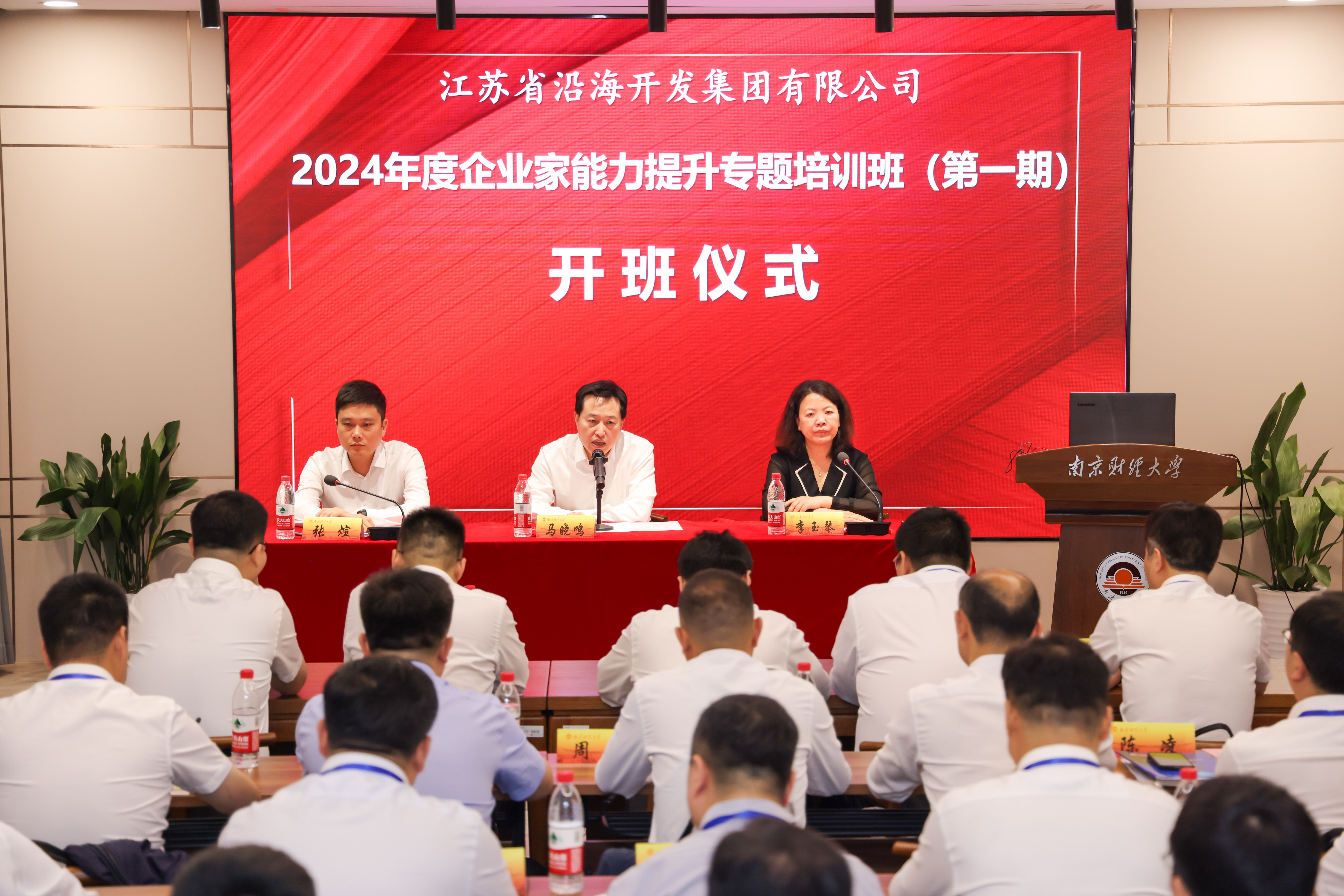 5月27日,江苏省沿海开发集团有限公司2024年度企业家能力提升专题培训班(第一期)开班仪式在金年会仙林校区同心文化书苑举行。江苏省沿海开发集团有限公司党委副书记、董事马晓鸣,金年会党委常委、统战部部长李玉琴等领导出席开班仪式。开班仪式由江苏省沿海开发集团有限公司党委组织部部长、人力资源部总经理张煊主持。全体学员和工作人员参加开班仪式。