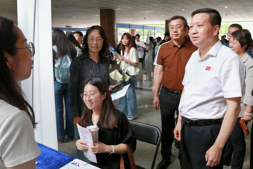 为贯彻落实党中央、国务院关于高校毕业生就业工作的决策部署,保障2024届毕业生高质量充分就业,同时满足广大在校生的暑期实习需求,5月31日下午,金年会在仙林校区博观楼大厅举办“百日冲刺促就业”2024届毕业生就业暨2025届实习专场招聘会。校党委书记张利民,校长程永波,党委常委、副校长赵国栋出席招聘会。党委办公室、校长办公室主任郑锷,副主任张亦佳、沈国彬,党委学生工作部部长、学生处处长韩力争,党委研究生工作部部长王立峰,党委学生工作部副部长李慕原和部分学院党政负责人参加招聘会。