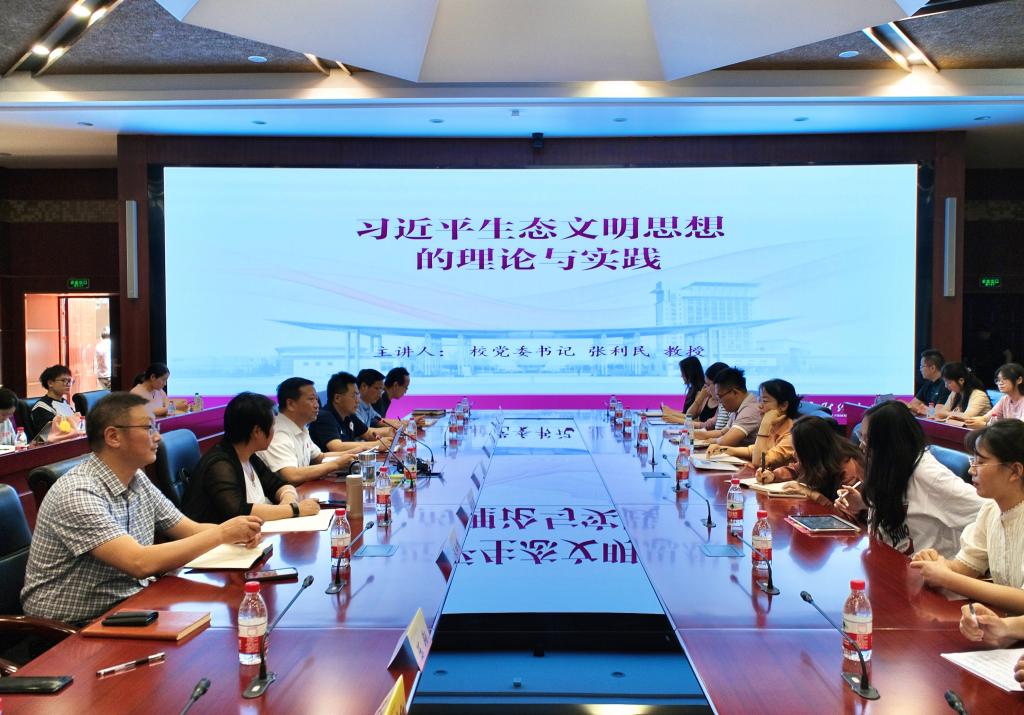 6月7日下午,校党委书记张利民在仙林校区工科楼二楼会议室为师生讲授了主题为“习近平生态文明思想的理论与实际”的党课。党政办、党委宣传部、学生处、研究生院、教务处、信息工程学院、马克思主义学院、绿色经济发展研究院相关负责人和教师,校绿色经济发展研究院硕士、博士一年级学生,马克思主义学院硕士一年级学生,信息工程学院研究生党支部全体党员,张利民书记结对联系信息工程学院研究生宿舍学生,党政办支部党员代表和党委宣传部支部党员代表等参加党课学习。