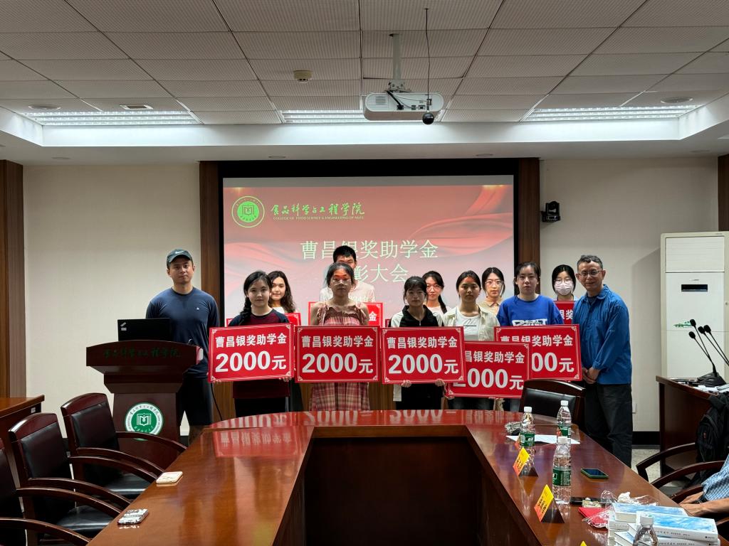 据悉,“曹昌银奖助学金”是由曹昌银先生出资定向捐助食品科学与工程学院的优秀学生,用以鼓励学生刻苦学习、潜心修业、用所学回馈社会,截至目前已资助两届共计15名学生。
