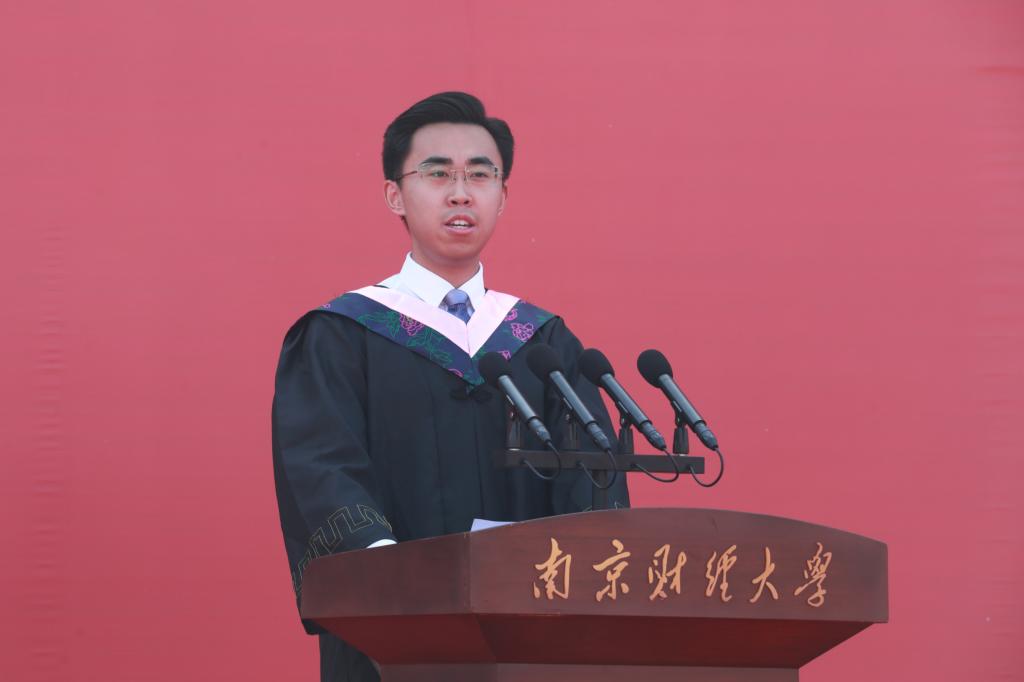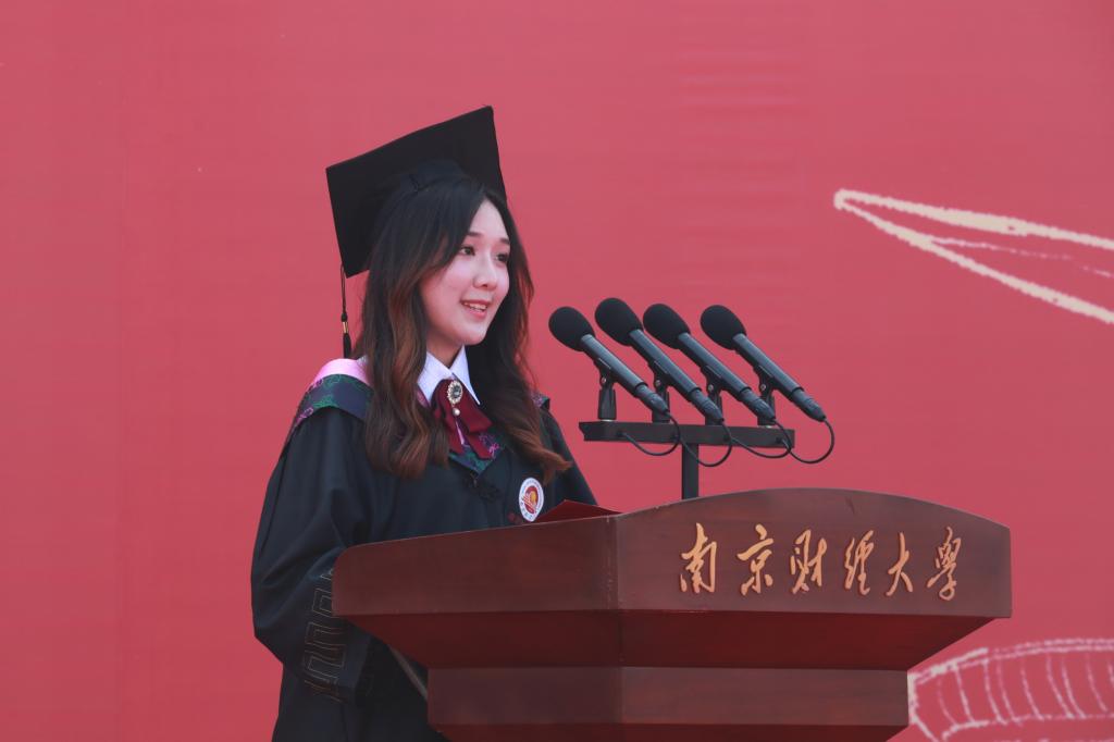 毕业生代表、新闻学院新闻2001班本科生马驭发言,回顾了在校的求学时光,表示将勇敢面对未来人生旅途中无数新的际遇、新的挑战、新的收获、新的惊喜,不忘母校栽培、铭记校训精神,奋力跑出新时代金年会青年的最好成绩!