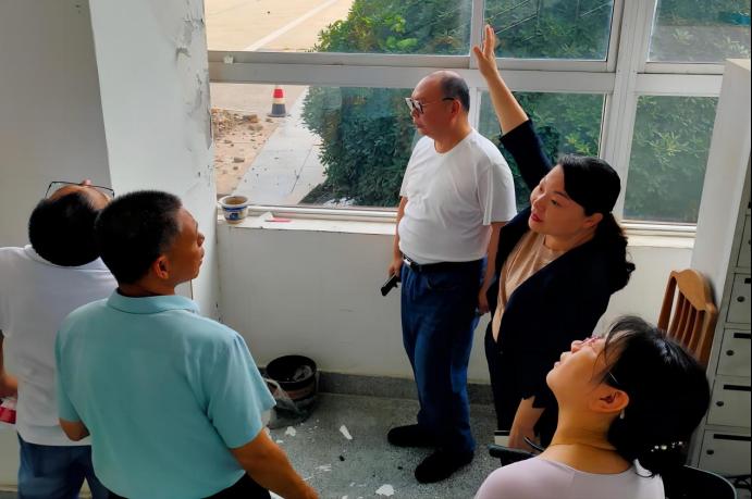 李煜副校长一行仔细查看了校区道路排水系统、图书馆一层管道维修现场以及图书馆内部等重点区域,对检查过程中发现的问题和安全隐患,提出明确的整改和指导意见,并要求责任部门采取措施,消除安全隐患。