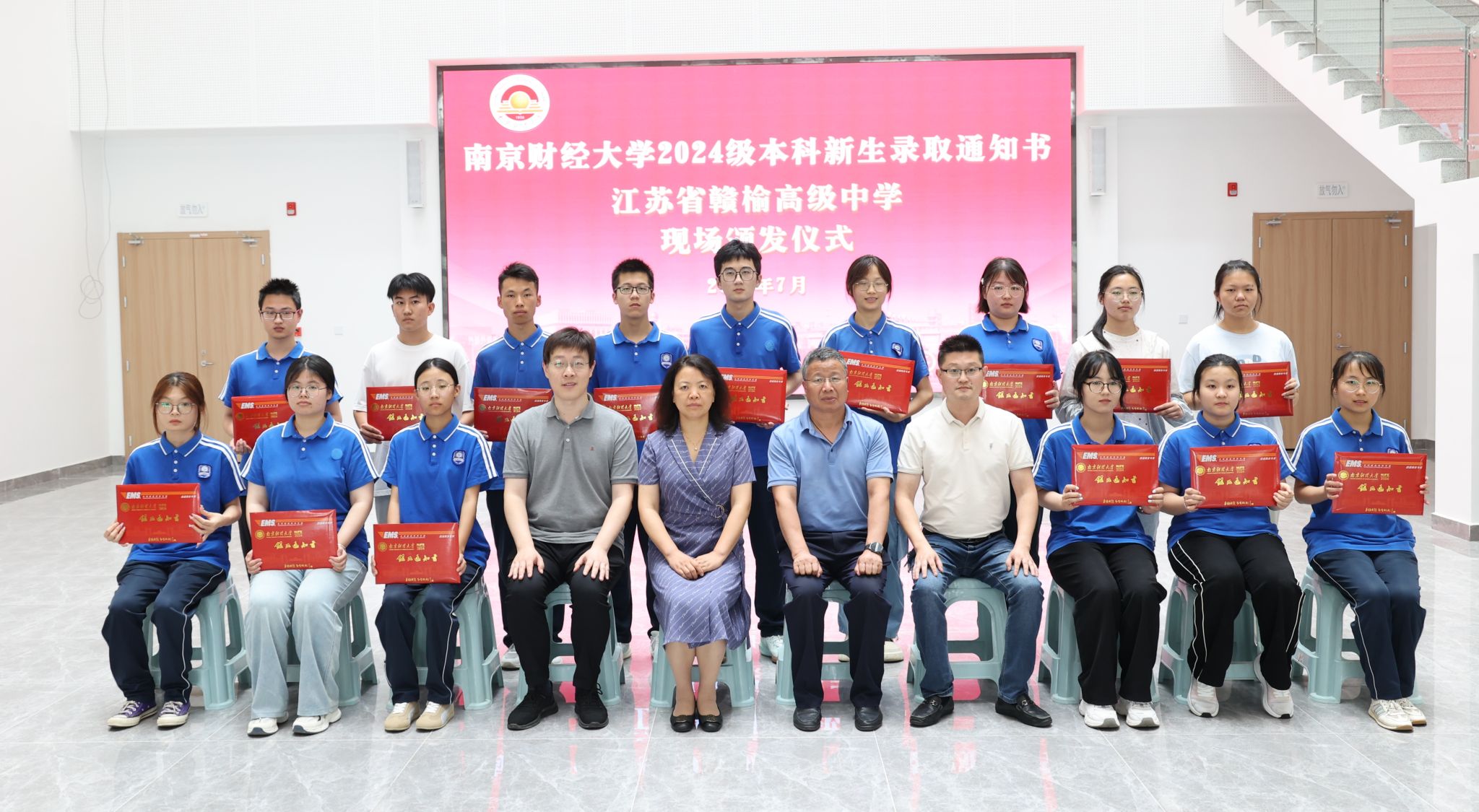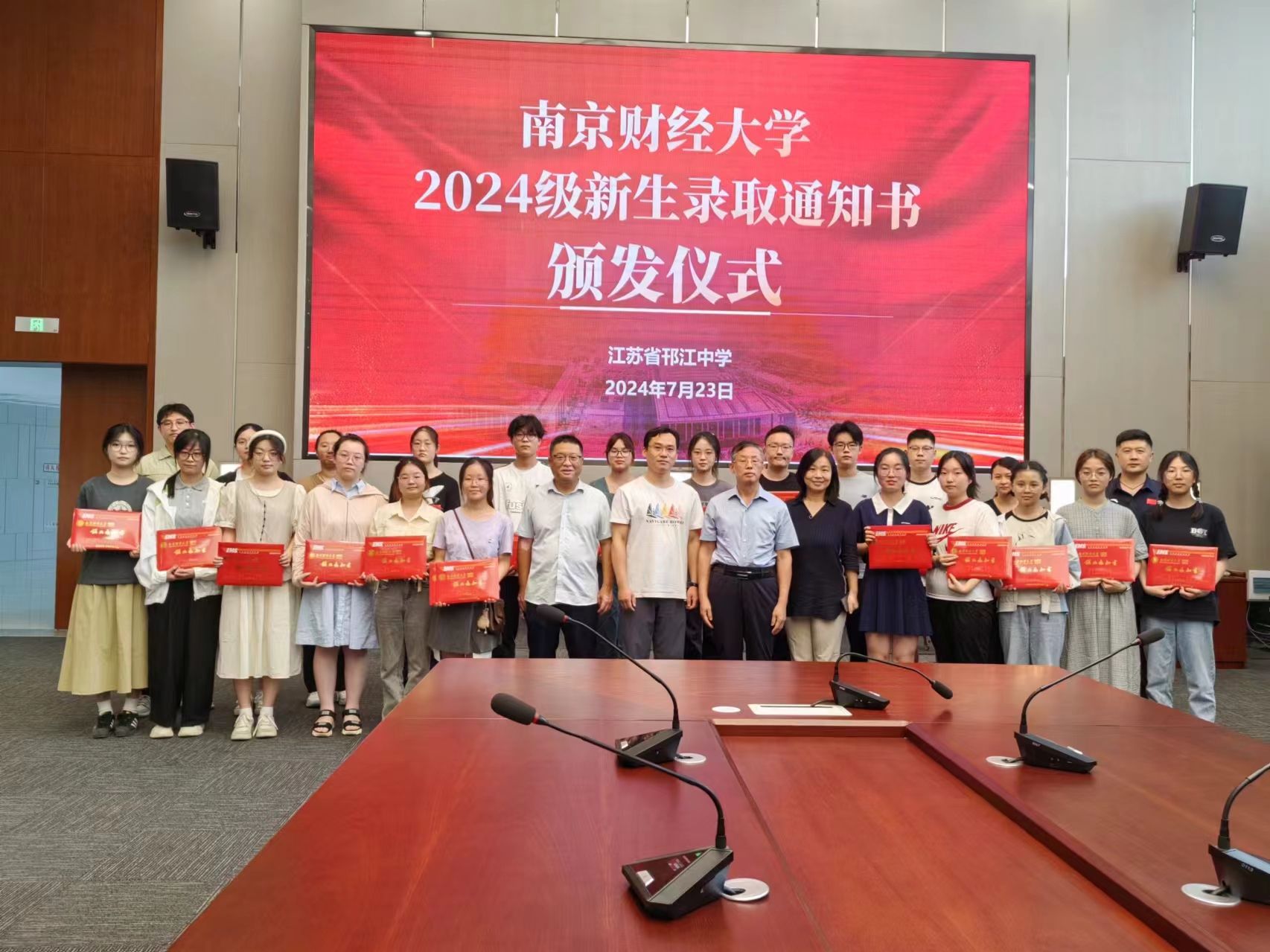 7月23日,党委常委、副校长黄步龙一行前往江苏省邗江中学,为22名新生颁发录取通知书,并赠送喜报。邗江中学副校长谢树峰、高三年级组主任金凤权,金融学院党委书记孙菲、党委副书记张士青及师生代表参加仪式。