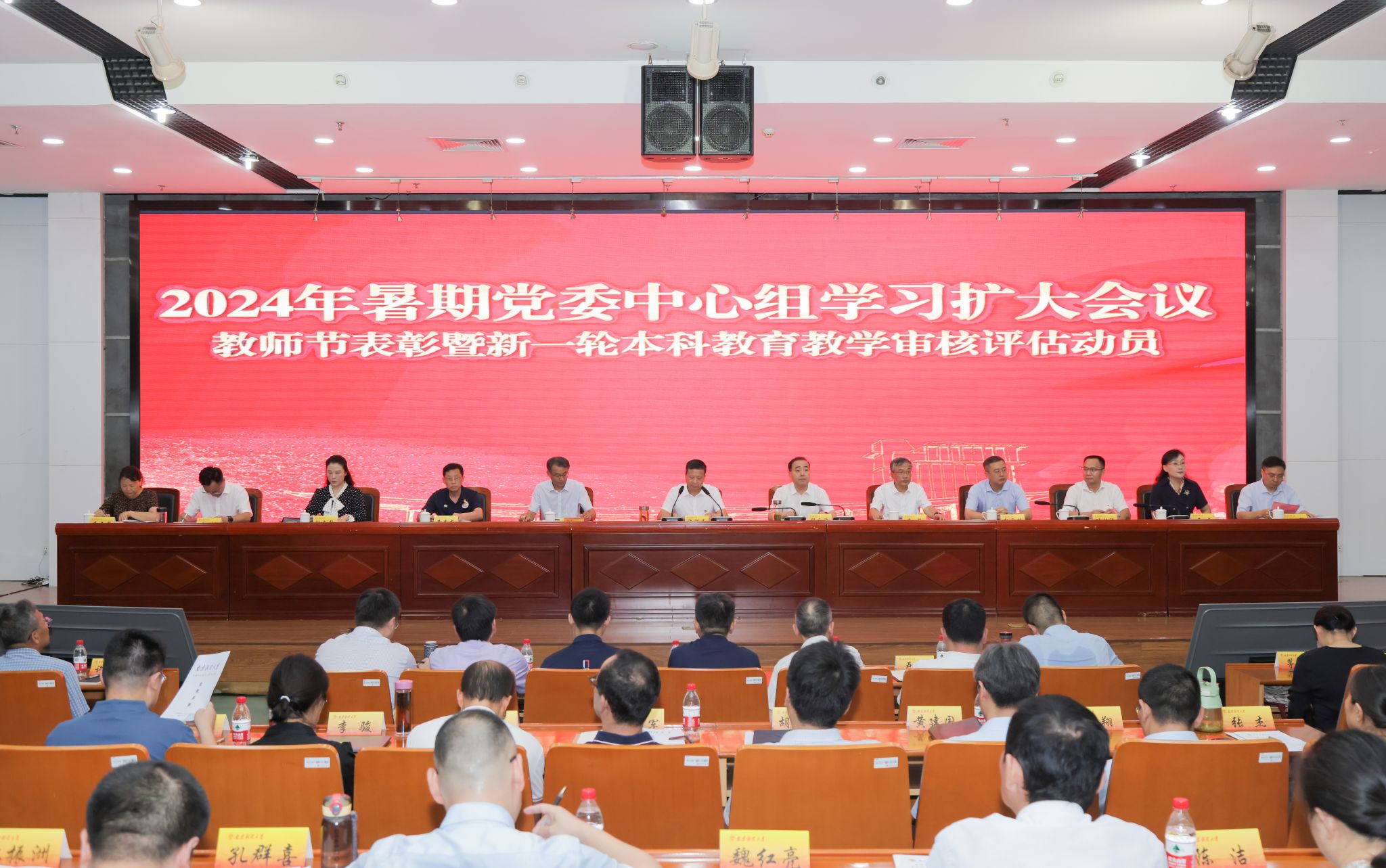 张利民书记作总结讲话,就进一步推动学校本科教育教学高质量发展和做好迎接本科教育教学审核评估提出三点要求。第一,深入学习贯彻党的二十届三中全会精神,充分认识本科教育教学工作的重要意义。要切实将学校本科教育教学工作放到国家和全省事业发展大局中去理解、去谋划、去推进,确保党的二十届三中全会精神在学校开花结果。全校上下要对本科教育教学工作的定位有清醒认识和深刻理解,牢固树立本科教育教学在学校工作中的重要地位,把全面加强本科教学工作,不断提高教育教学质量放到学校工作的重要位置。全体教师要深刻认识到教书育人是高校教师的首要任务,始终保持强烈的责任感和使命感,聚焦人才培养的核心要素、关键环节,潜心教书育人,切实做好本科人才培养工作。第二,坚持将立德树人作为根本任务,持续推进本科教育教学高质量发展。一是要聚焦顶层设计,完善学科评价体系。二是要聚焦教师专业发展,严格教师考核评价。要严格师德师风考核评价,强化教育教学评价,重视科学研究评价,完善社会服务评价。三是要聚焦学生成长成才,强化学生学习效果评价。第三,“全员动员”“全员参与”,高质量完成本科教育教学审核评估迎评工作。一是思想认识再提高。学校各部门各单位要广泛宣传、层层动员,充分认识审核评估工作的重要性。学校全体师生员工要全面了解校情、院情、学情,全面熟悉审核评估及评估项目、要素、要点的内涵。二是责任链条再压实。各专项工作组要围绕审核评估要求,做好人员协调、思想教育、宣传发动和组织保障工作,充分调动全校师生员工参与评估的积极性。各相关部门要认真做好相关制度建设,各部门各单位要根据学校工作方案要求,及时召开迎评动员部署会,把每一项具体任务落到每一位领导干部、每一位教师、每一位职工、每一位学生身上。各教学院部要积极组织师生投身到教育教学实践中,严格教育教学管理全过程。信访督办室、纪委办要把本科教育教学审核评估作为党委重点工作,定期开展检查,并及时通报结果,对落实不力的依规依纪追责问责。三是自查自评再深化。要继续认真对标对表评估指标体系与内涵要义,紧密结合“立德树人”根本任务落实情况,进一步开展迎评工作对照检视和自查自纠,认真查摆问题,正视短板和不足,进一步整改与优化,凸显优势与特色。