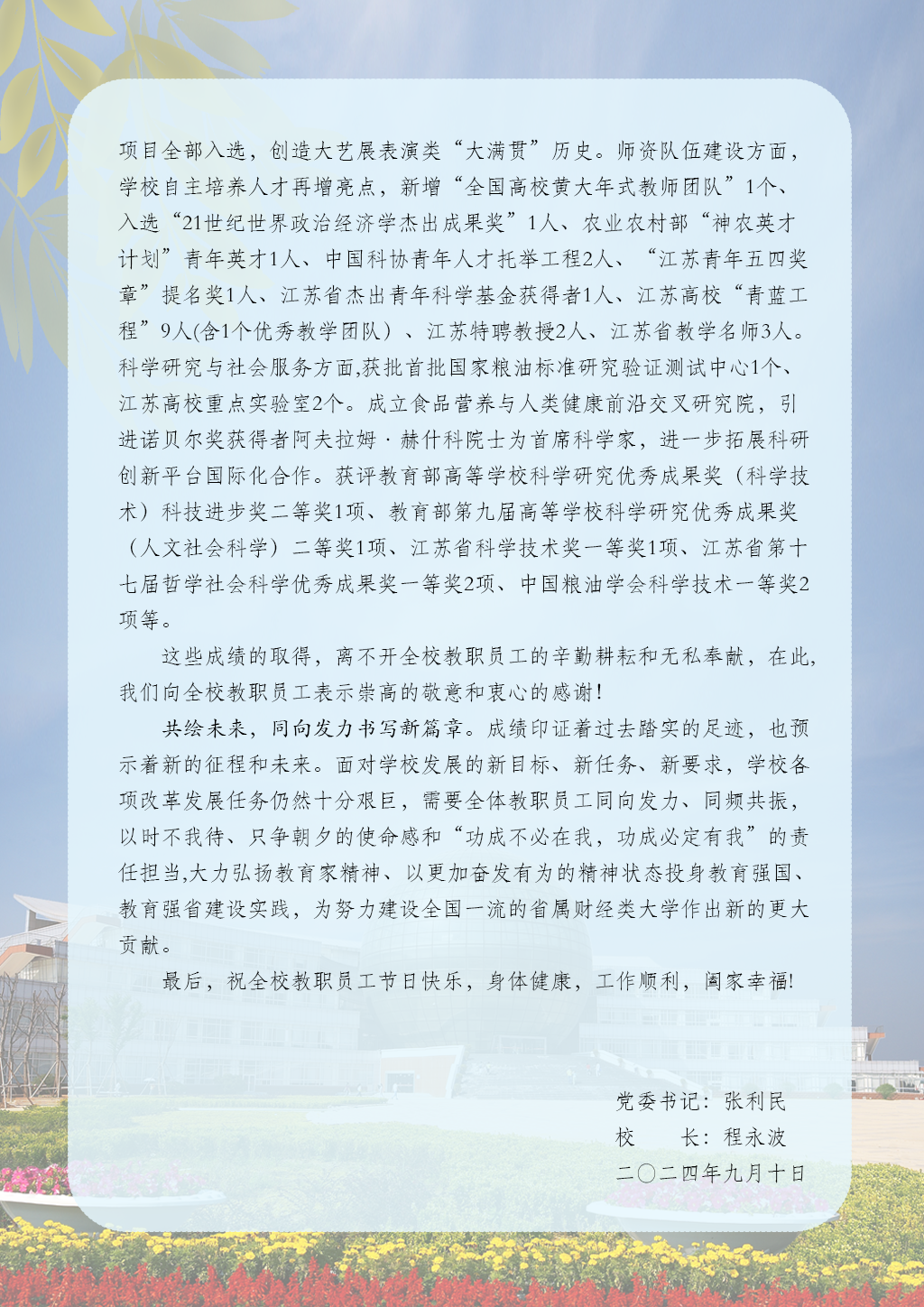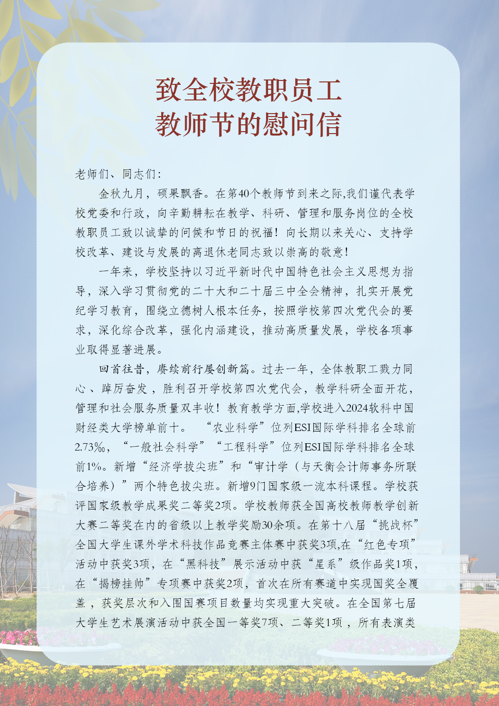 致全校教职员工教师节的慰问信