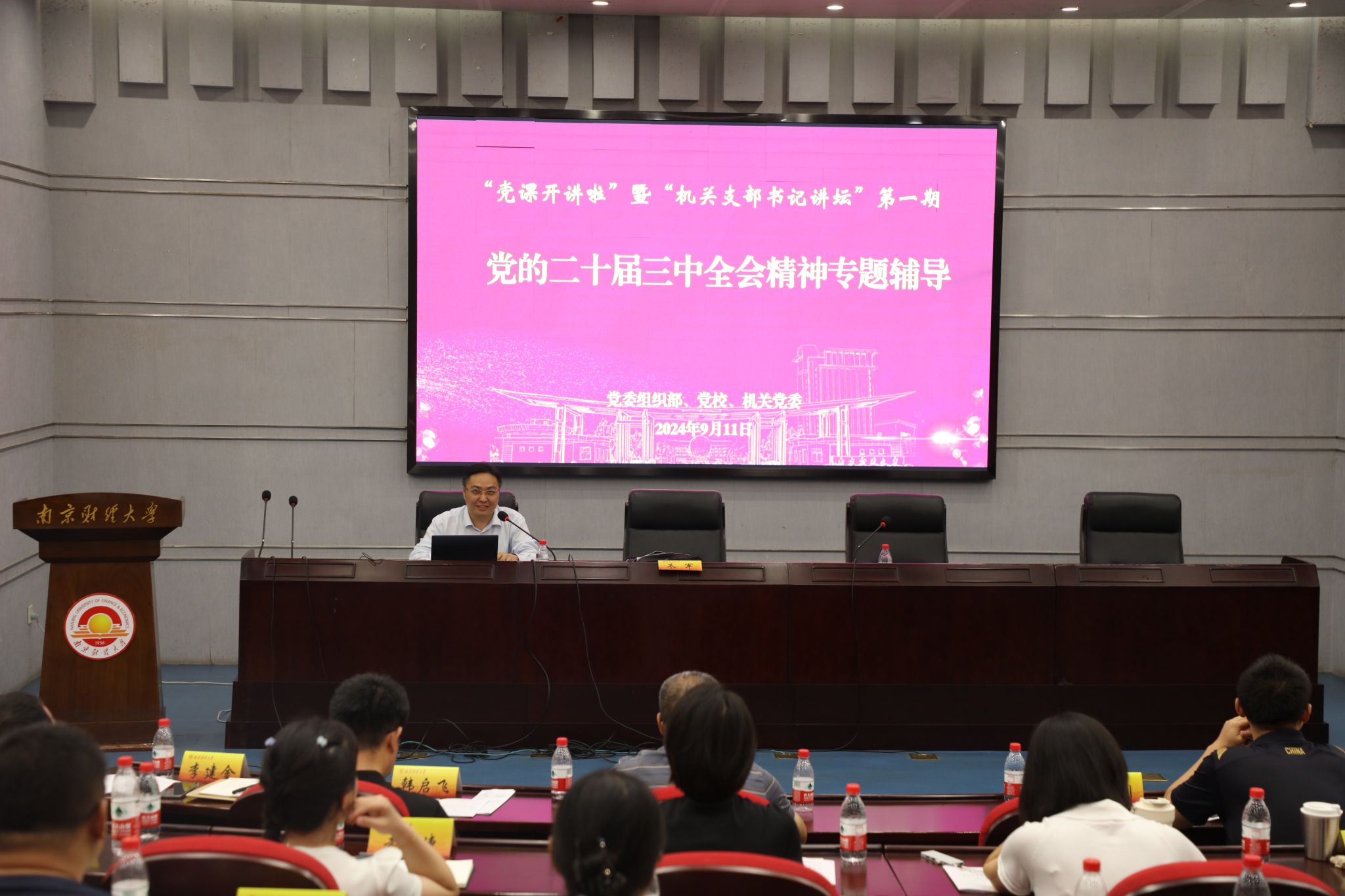 9月11日下午,金年会在仙林校区行政楼二楼报告厅举办“党课开讲啦”暨“机关支部书记讲坛”。党委常委、组织部部长、党校常务副校长吕戎出席讲坛并讲话,机关全体党委委员、组织员、科职干部,图书馆党总支书记、党员代表等参加学习。讲坛由机关党委书记、党委组织部副部长徐刚主持。