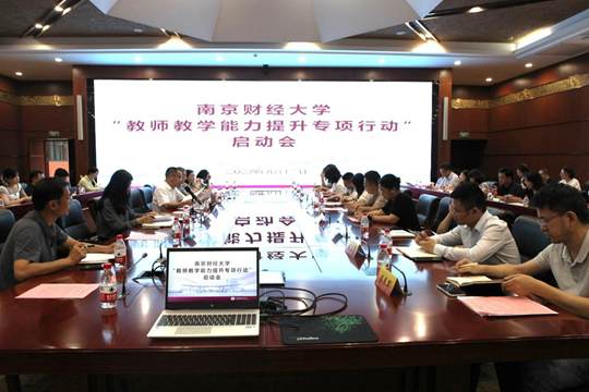 9月12日,金年会“教师教学能力提升专项行动”启动会在仙林校区工科楼二楼会议室召开。党委常委、副校长叶林祥出席会议并讲话,校新一届本科教师教学指导委员会委员,各学院教学副院长、系主任,评估及质量监控中心、教师(教学)发展中心相关人员,教务处相关工作人员参加会议。会议由教务处处长朱红根主持。