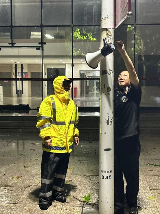 张利民书记对学校防台防汛各项工作给予充分肯定,并向奋战在防台防汛、抢险救灾一线的教职员工表示敬意和问候。张利民书记强调,此次台风来势汹汹,学校高度重视,认真贯彻落实上级相关部署要求,及时启动应急响应联动机制,各单位密切配合、协同联动,在保障师生安全、安全隐患排查、加强值班值守、全面落实各项防汛抗台举措等方面进行了提前部署和周密安排。张利民书记指出,各单位要以“时时放心不下”的责任感和极端负责的精神,牢固树立底线思维和极限思维,坚持生命至上、安全第一,切实担负起维护学校安全稳定的政治责任。一是要把深入排查排险放在第一位,加强统筹调度,严谨细致做好台风后校园恢复工作,坚决杜绝二次灾害和安全事故发生。要抓紧开展受损设施安全鉴定、校园环境整治和清理恢复等工作,确保校园正常学习生活秩序。二是要严格落实学校应急响应联动机制,针对可能发生的自然灾害和潜在风险等,要防范在先、提前部署,全方位加强监测预警、巡查排查、值班值守、物资储备、应急处置等各项措施,有效提升应对突发情况的综合指挥、快速反应和应急处置等能力。三是要做好留校师生关心关爱、安全教育和管理工作,提高师生风险防范意识,严格落实值班值守制度,切实保障大家度过一个平安祥和的中秋佳节。