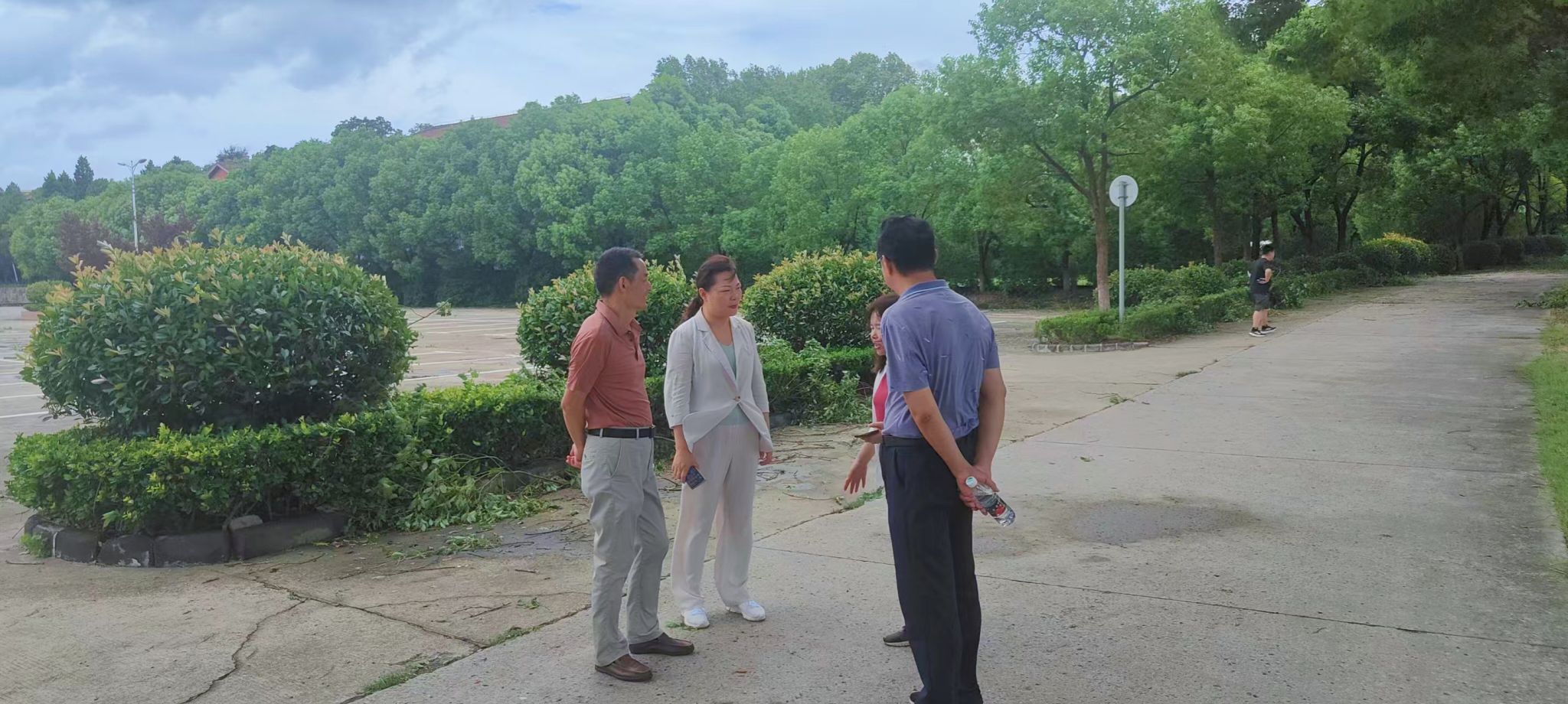 9月16日晚,台风“贝碧嘉”进入南京,狂风和暴雨叠加,对学校建筑设施、树木造成了不同程度的破坏。9月17日一早,校党委书记张利民,党委常委、副校长赵国栋,党委常委、副校长李煜分别带队实地察看仙林校区和桥头校区台风受灾情况,指导台风后校园恢复工作。党政办主任郑锷,研究生院院长沈永建,保卫处处长刘伟华,后勤基建处处长杜金华,党委宣传部副部长秦韶华,后勤基建处副处长王成杰,红山学院党委副书记、副院长王晨婷等陪同检查。