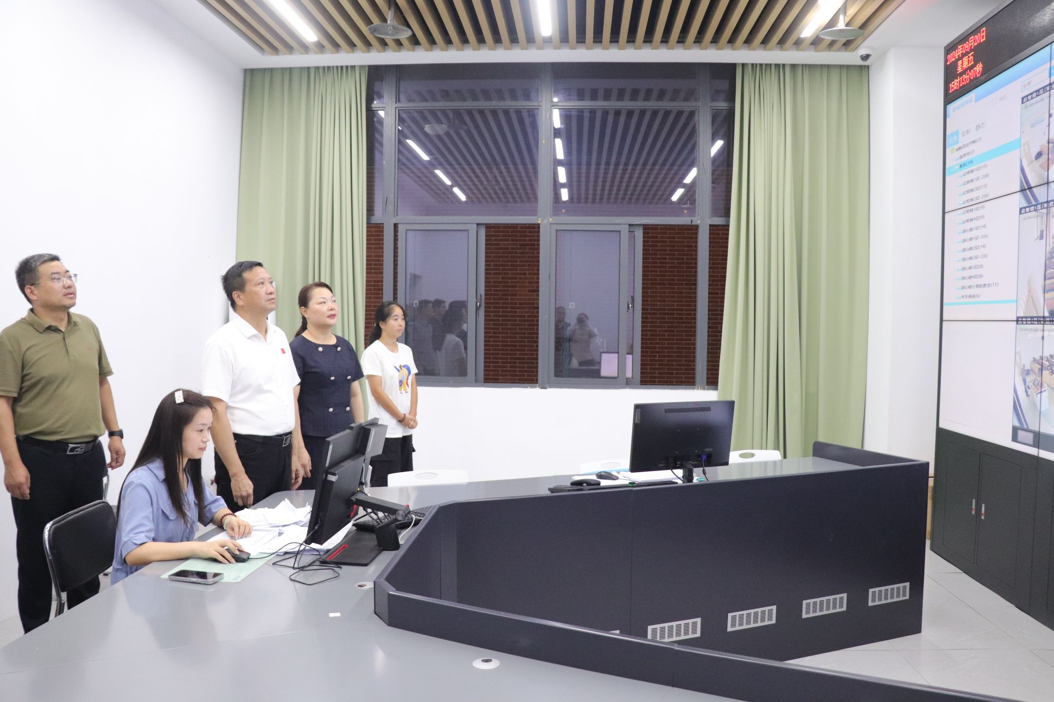 张利民书记一行检查教学督导中心多媒体教学控制室