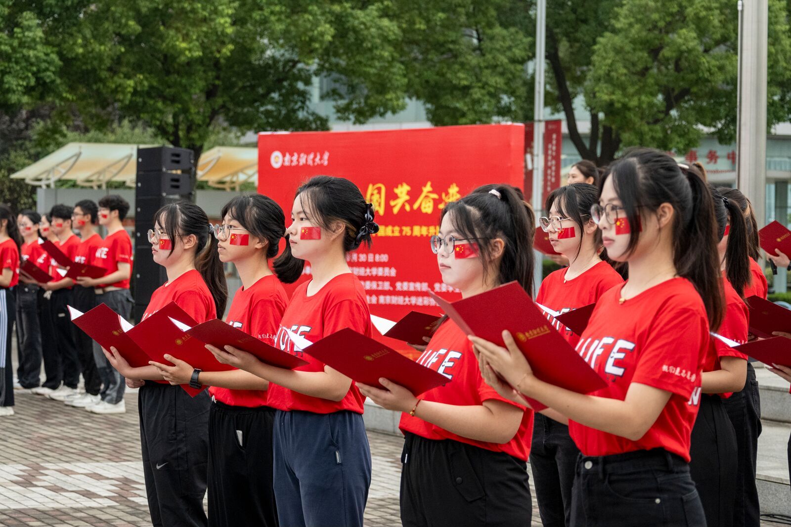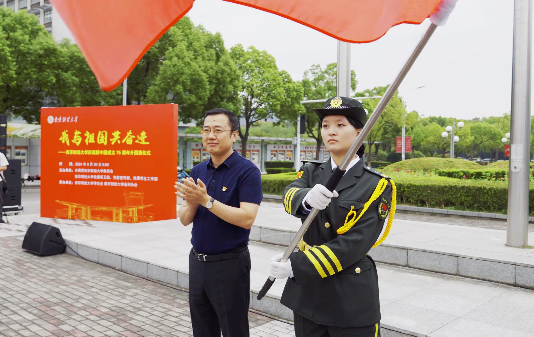 9月30日上午,金年会在仙林校区嘉禾大道国旗广场举办“我与祖国共奋进”庆祝新中国成立75周年升国旗仪式。党委常委、副校长赵国栋出席活动,校团委、党委保卫部、党委宣传部、体育部等职能部门负责人,各学院团委负责老师,团员青年代表200余人参加活动。