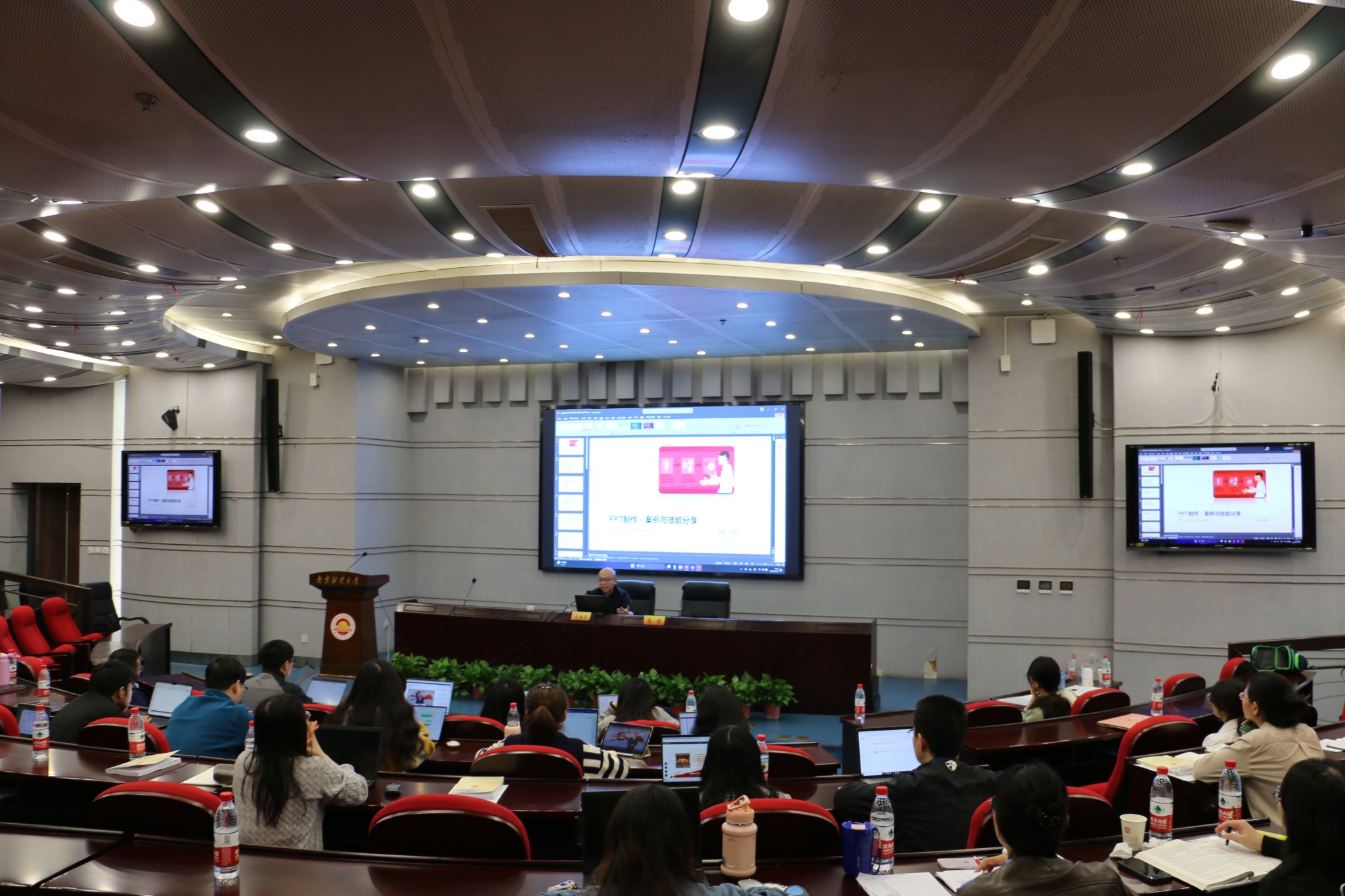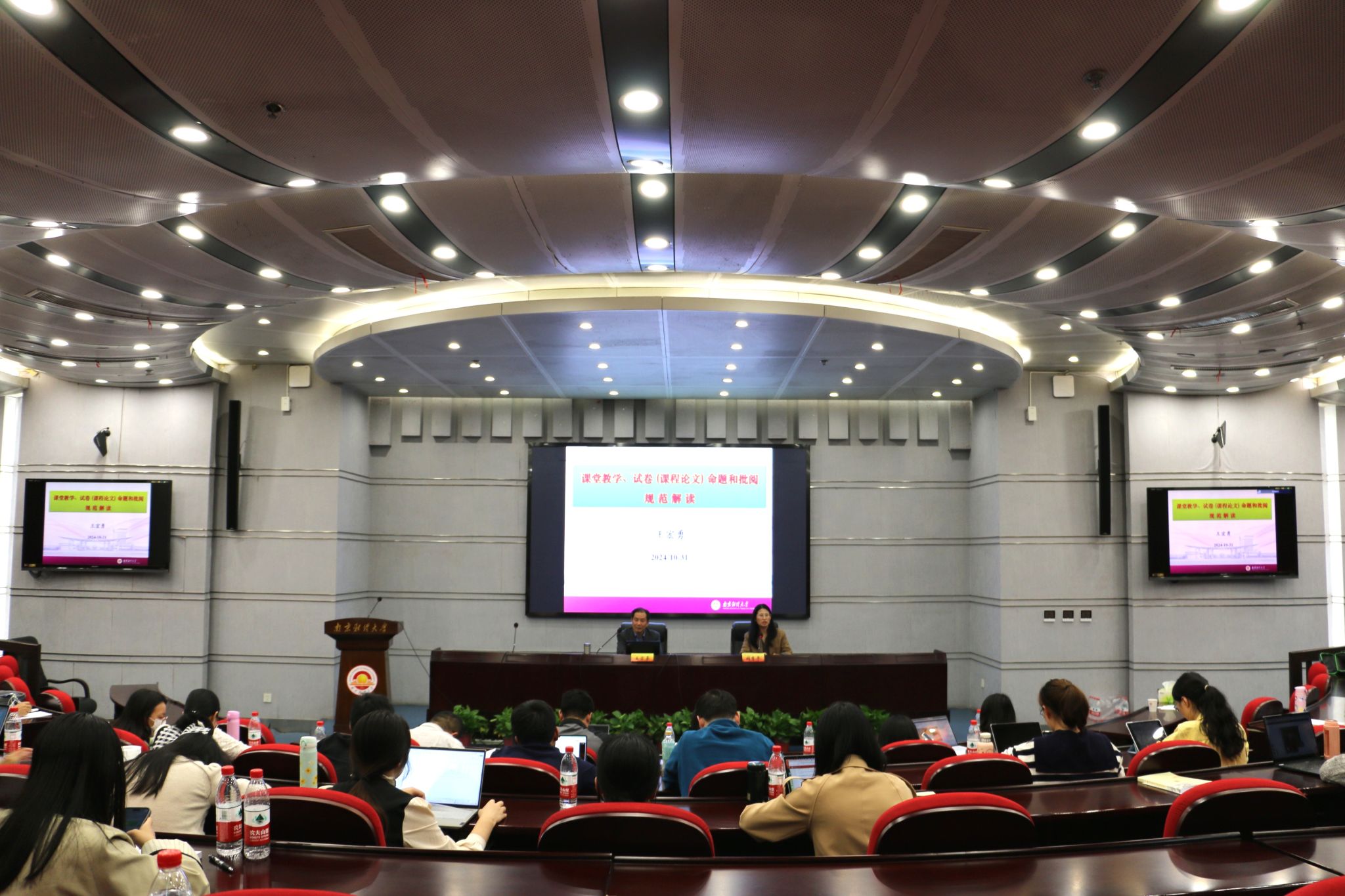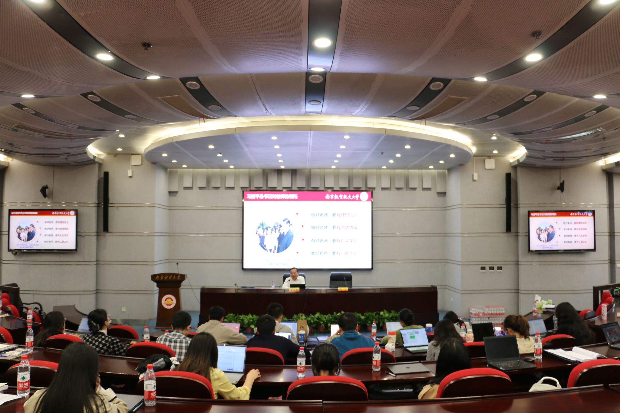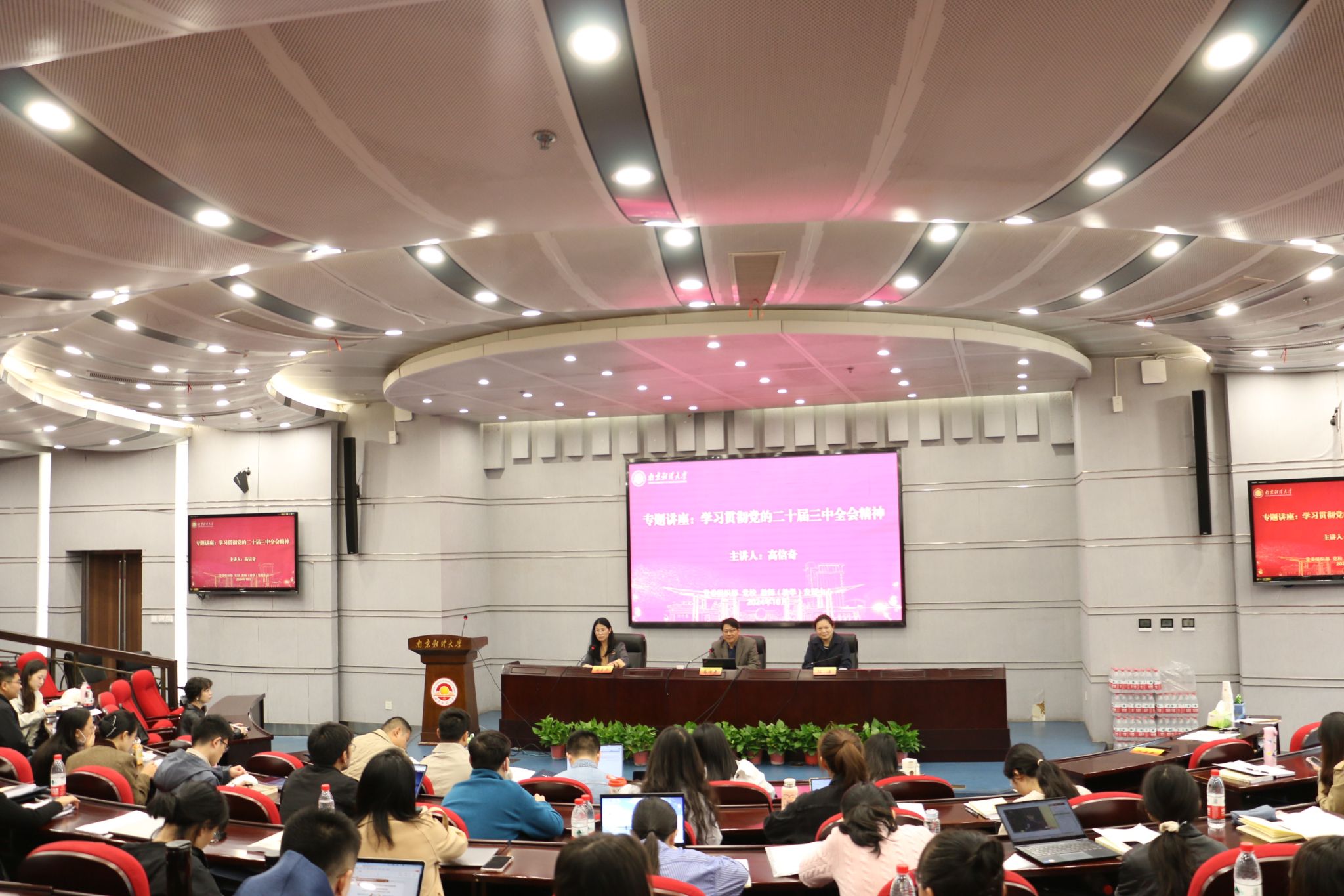 南京市委党校高信奇教授以“进一步全面深化改革推进中国式现代化开辟广阔前景——学习贯彻党的二十届三中全会精神”为题,紧紧围绕习近平总书记在党的二十届三中全会上的重要讲话和《中共中央关于进一步全面深化改革、推进中国式现代化的决定》进行深入解读。他从目标任务、指导思想和遵循原则三个维度,系统阐述了新征程推进中国式现代化必须进一步全面深化改革的重要性和必然性;运用典型案例分析了全面深化改革“为何改、往哪改、怎么改”的问题。南京大学王运来教授作“陶行知的教育家精神与改革家实践新探”专题讲座。他以“知行合一”理念为切入点,阐释了陶行知“捧着一颗心来,不带半根草去”的奉献精神和“生活即教育,社会即学校,教学做合一”的教育理念对当今高校教师的启示意义。国家级教学名师、南京航空航天大学王成华教授作“青年教师发展与教学成果培育”专题讲座。他从教学能力提升和教学成果凝练两个维度,提出青年教师要注重课程思政融入、教学方法创新和教学反思改进,要善于总结提炼可推广的教学经验。南京师范大学尤海宁副教授作题为“PPT制作——案例与技能分享”的讲座。