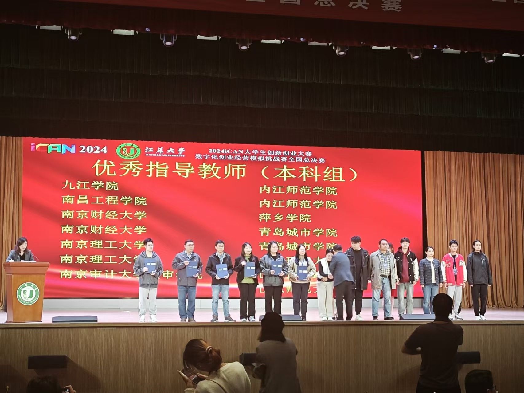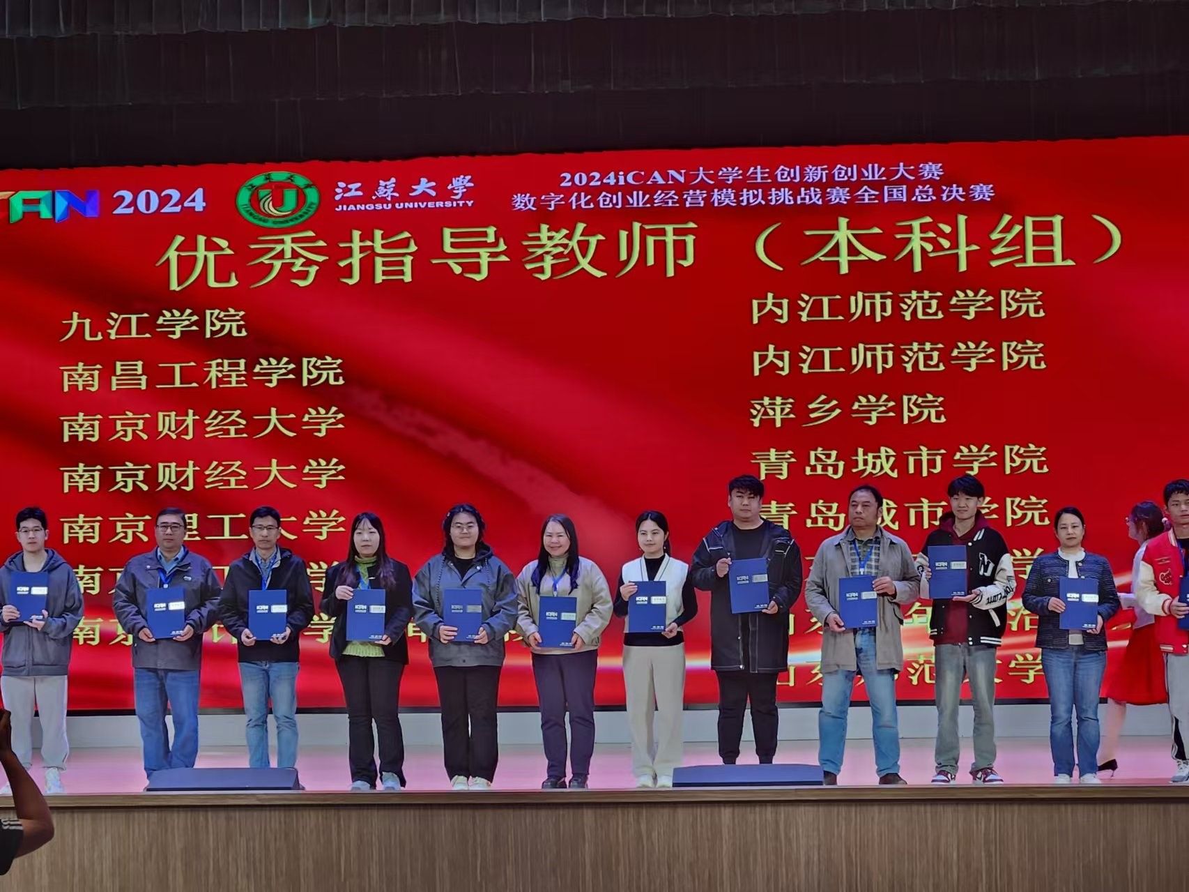 优秀指导教师代表、经济学院邵玮上台领奖(左七)