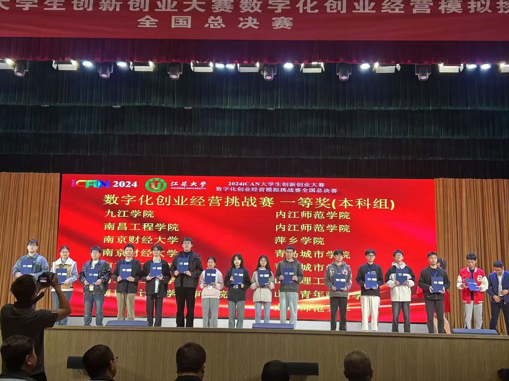 11月15日至17日,由中国信息协会主办的iCAN大学生创新创业大赛数字化创业经营模拟挑战赛全国总决赛在江苏大学举办。金年会学子表现优异,共获得全国总决赛一等奖(最高奖项)2项,4名老师获评优秀指导教师。