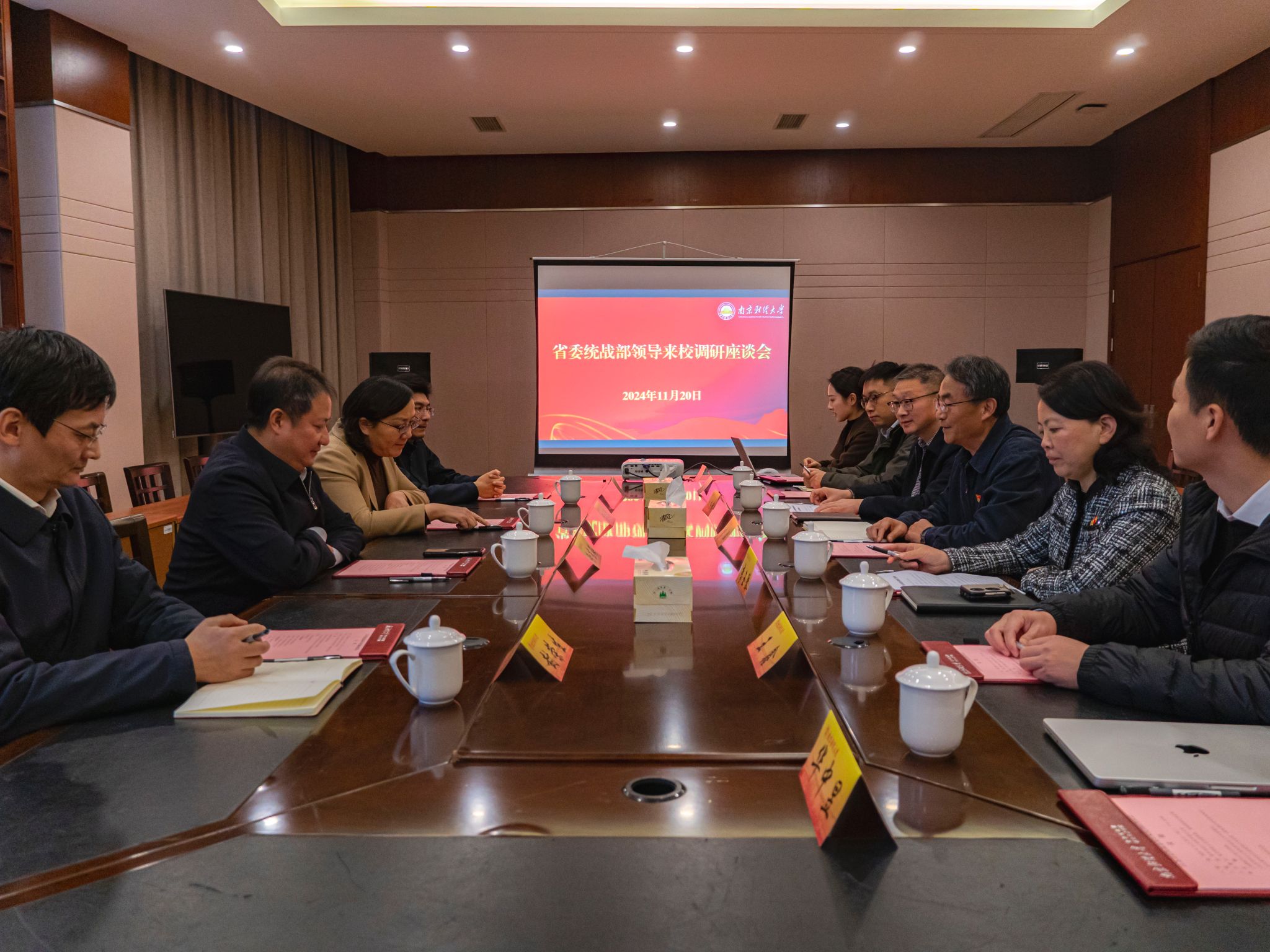 11月20日下午,省委统战部副部长徐东海一行来金年会调研江苏省统战理论研究基地工作。校党委书记张利民,校党委副书记李群,党委常委、统战部部长李玉琴陪同调研,省委统战部研究室主任梁永琴、副主任封荣生,金年会党政办主任郑锷,教务处处长、省统战理论研究基地执行主任朱红根,以及党政办、党委统战部、经济学院、档案馆等单位相关同志参加调研。