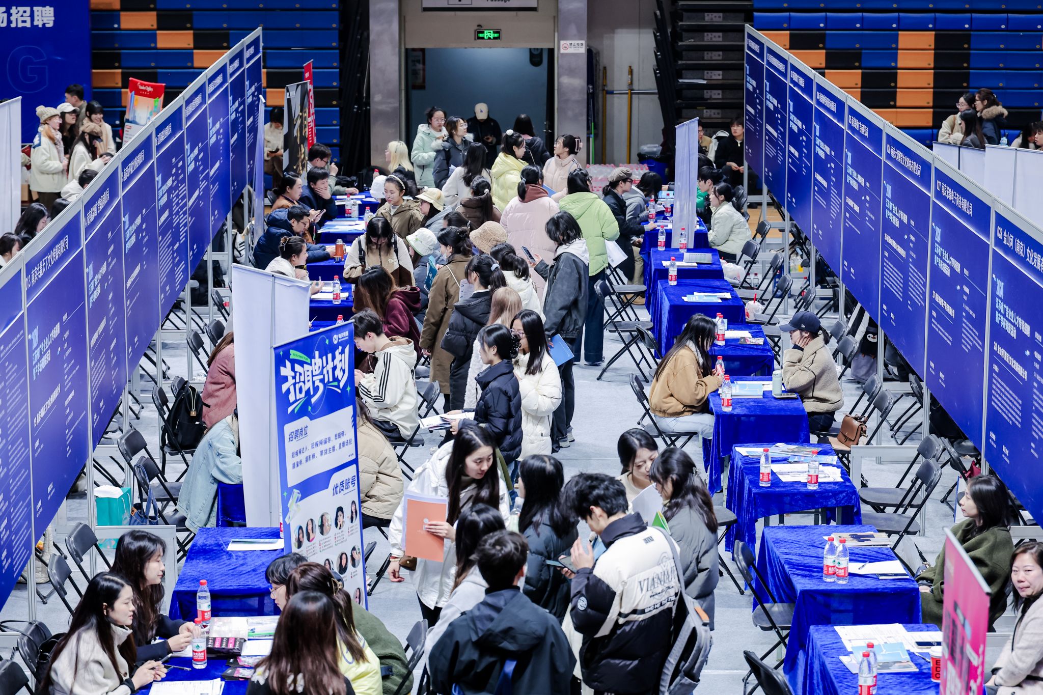 12月5日下午,江苏省广告企业人才专场招聘暨产学研对接活动在仙林校区体育馆举行。省市场监督管理局二级巡视员薛荣刚,省广告协会会长贺寿天,校党委书记张利民,党委常委、副校长赵国栋出席招聘会。省高校招生就业指导服务中心党总支书记缪榕楠,省市场监管局广告处处长赵荣霞、副处长陈宁,省高校招生就业指导服务中心信息服务部副部长王华,校党政办主任郑锷,学生处处长韩力争,营销与物流管理学院党委书记刘颖,艺术设计学院党委书记刘浩,学生处副处长、大学生就业与创业指导中心主任李慕原,营销与物流管理学院党委副书记仲巧林、副院长姚杰,新闻学院党委副书记李博伟,艺术设计学院党委副书记张荣霞,金年会2025届毕业生参加招聘会。