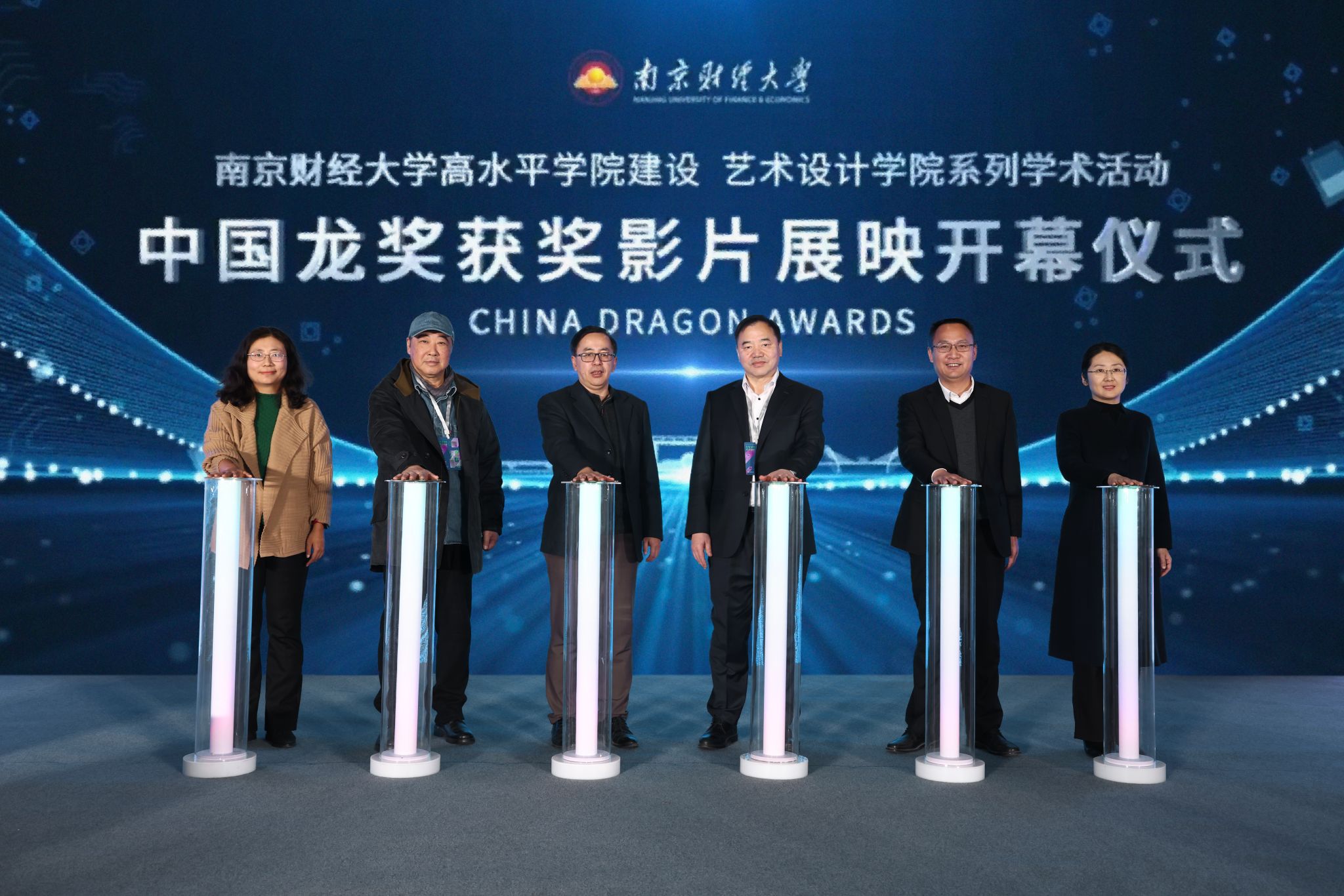 张健副书记,冯少东副主席,叶林祥副校长,南京艺术学院原副校长、中国工业设计协会特邀副会长、江苏省工业设计学会理事长何晓佑,南京市栖霞区政协副主席、科协主席任秋娴,南京市栖霞区文联常务副主席杜巍共同启动“中国龙奖”获奖影片展映开幕仪式,并一同欣赏展映影片集锦。