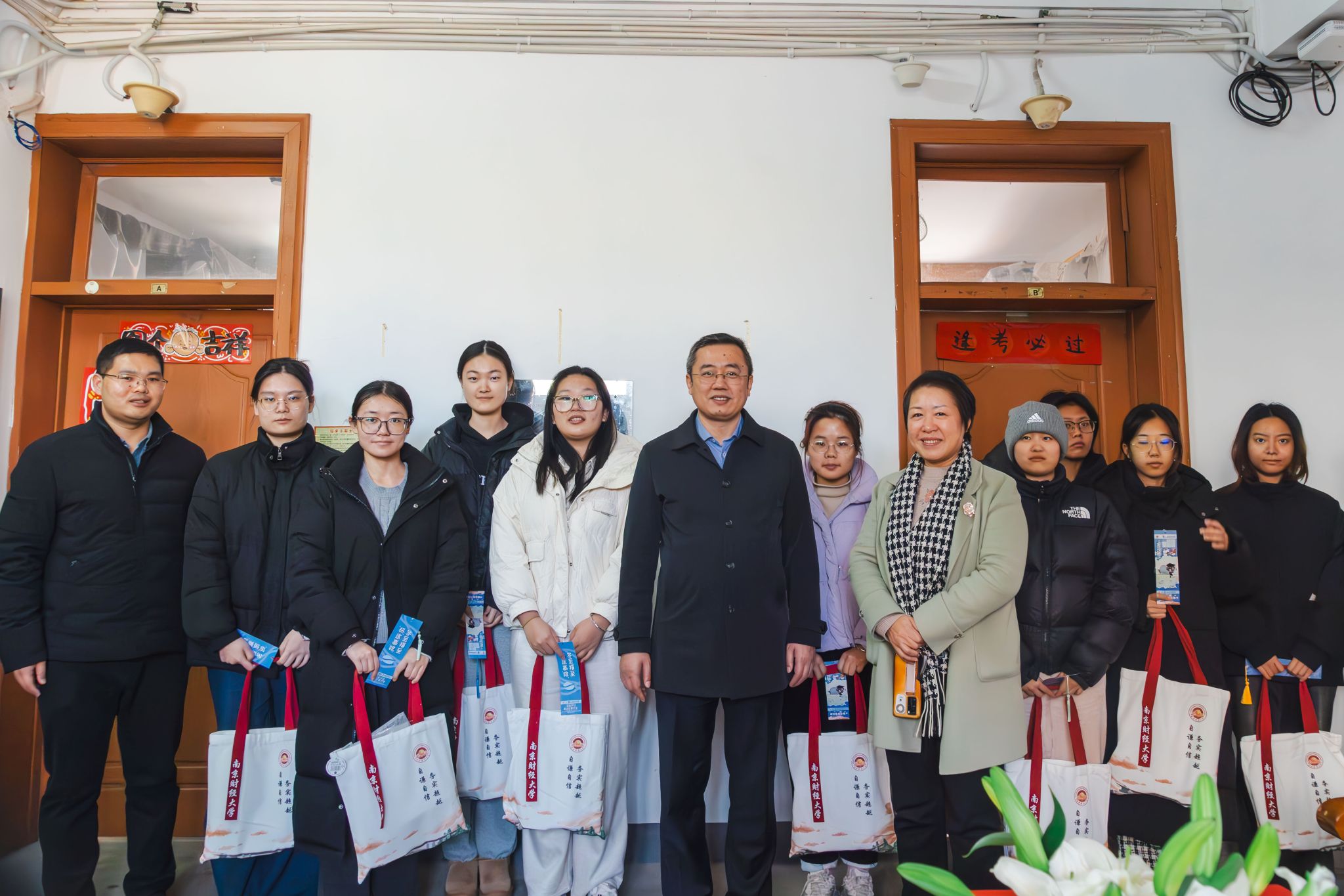 研途送温暖,助力考研梦。2025年全国硕士研究生招生考试在即,为增强考研学生的备考信心,传递温暖与力量,12月17日,党委常委、副校长赵国栋一行到仙林校区学生宿舍,看望慰问考研学生,送去学校的祝福与关怀。党委学生工作部部长韩力争、副部长袁怡琨和相关学院党委副书记等陪同慰问。