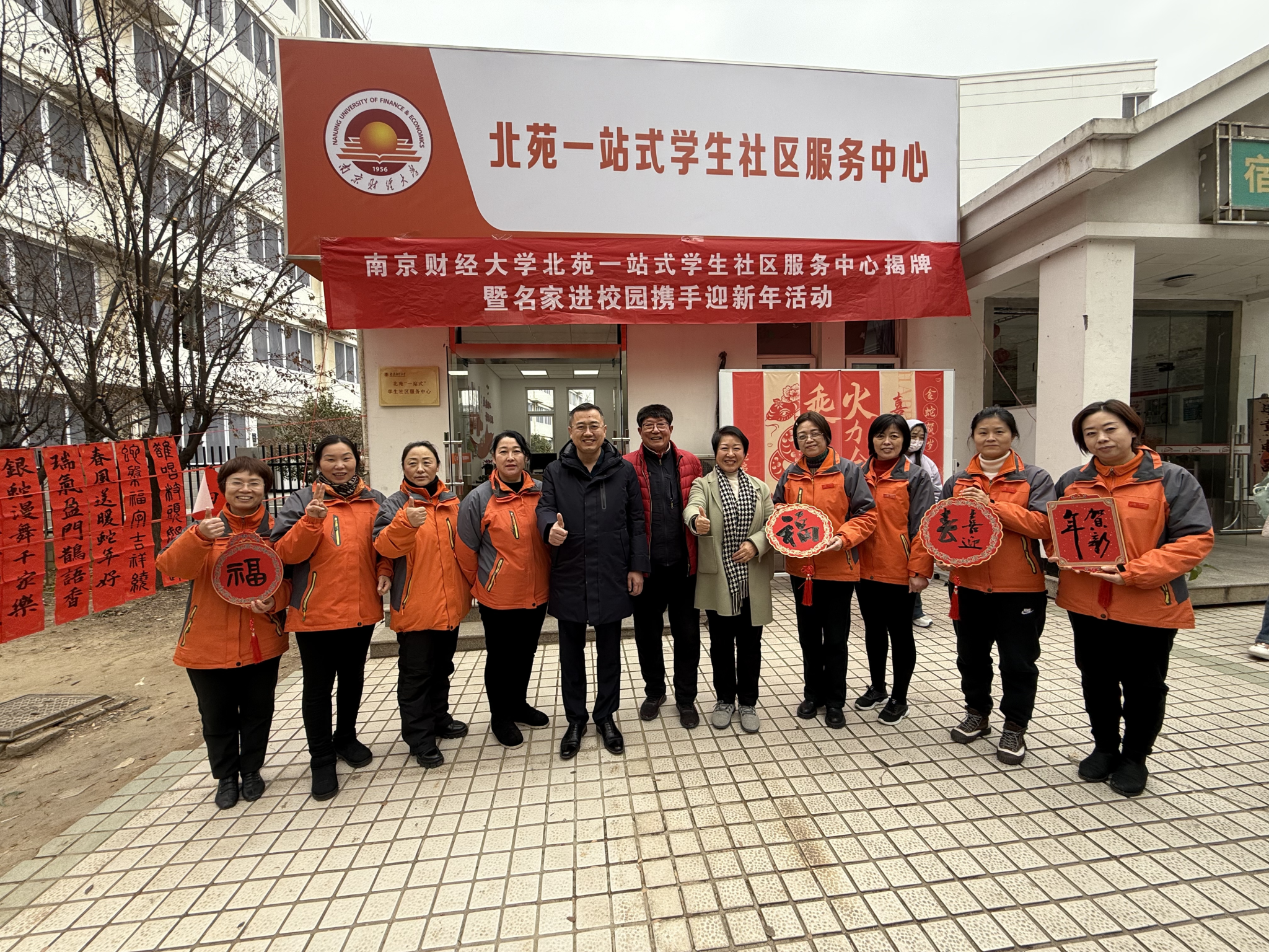 12月23日,党委常委、副校长赵国栋参加仙林校区北苑“一站式”学生社区服务中心揭牌暨名家进校园携手迎新年活动。党委学生工作部部长、学生处处长韩力争,心理健康教育中心主任、学生处副处长赵亮,艺术设计学院党委副书记张荣霞,金融学院党委副书记张士青,信息工程学院党委副书记马健,食品科学与工程学院党委副书记胡心淼参加活动。金年会中华优秀传统文化工作站指导老师、中国书画创作委员会副主席、著名书法家邵希平作为特邀名家参加活动。