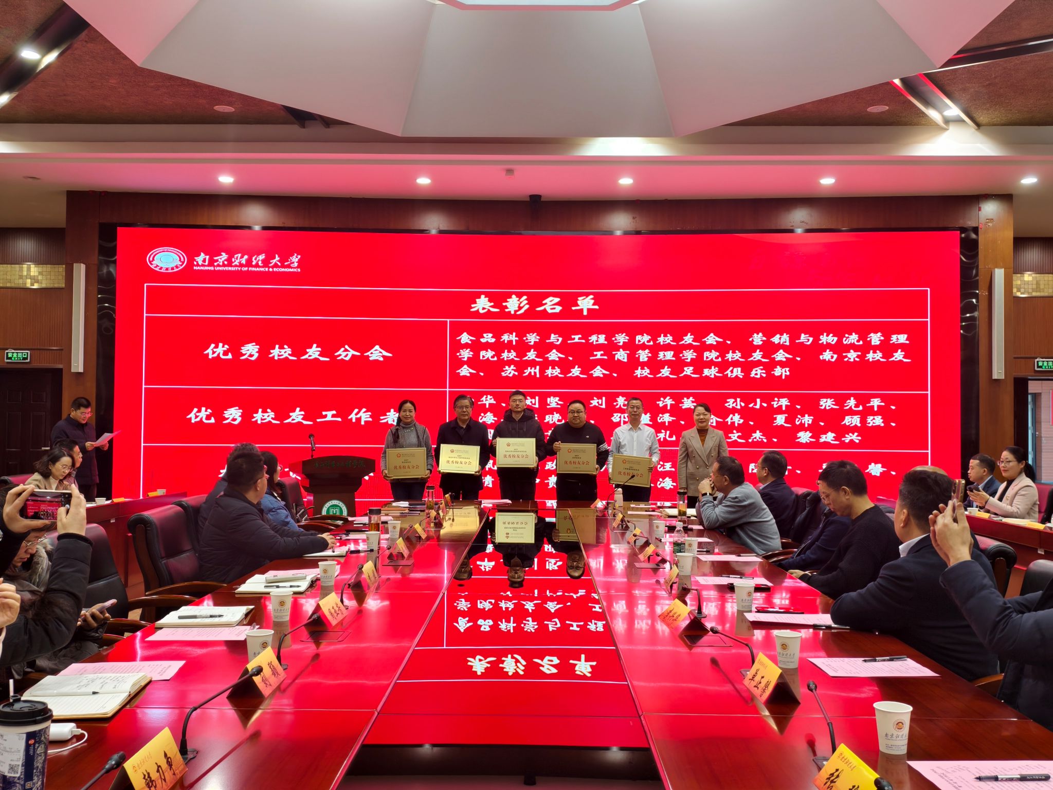 会议第一阶段为2024年校友工作会议。会议听取了《金年会jinnianhuicom校友会2024年工作报告》,表决通过《关于调整金年会jinnianhuicom校友会第三届理事会理事、常务理事的议案》,并对2024年“优秀校友分会”“优秀校友工作者”“校友贡献奖”进行表彰。李煜副校长为食品科学与工程学院校友会等6家优秀校友分会颁奖。校友总会副会长曹立峰、吴红斌、李兴华和常务理事潘玉堂,分别为计华等17名优秀校友工作者、王佩等10名校友贡献奖获得者颁奖。工商管理学院、南京校友会、工商管理学院校友会签署三方结对共建协议,开启学院和地方校友会、学院校友会友好合作、共同发展的新篇章。