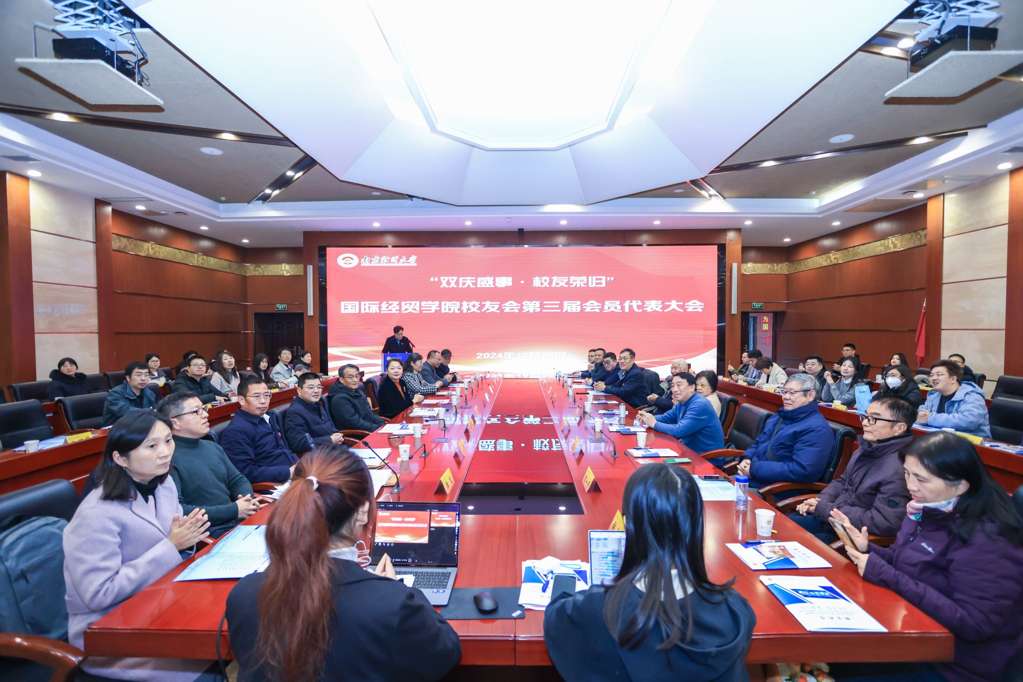 12月28日,国际经贸学院举办“双庆盛事•校友荣归”系列活动,庆祝学院本科办学40周年、研究生办学20周年,并开展学院校友会理事会换届工作。校党委副书记李群,党委常委、副校长李煜出席相关活动,学院100余名校友参加活动。