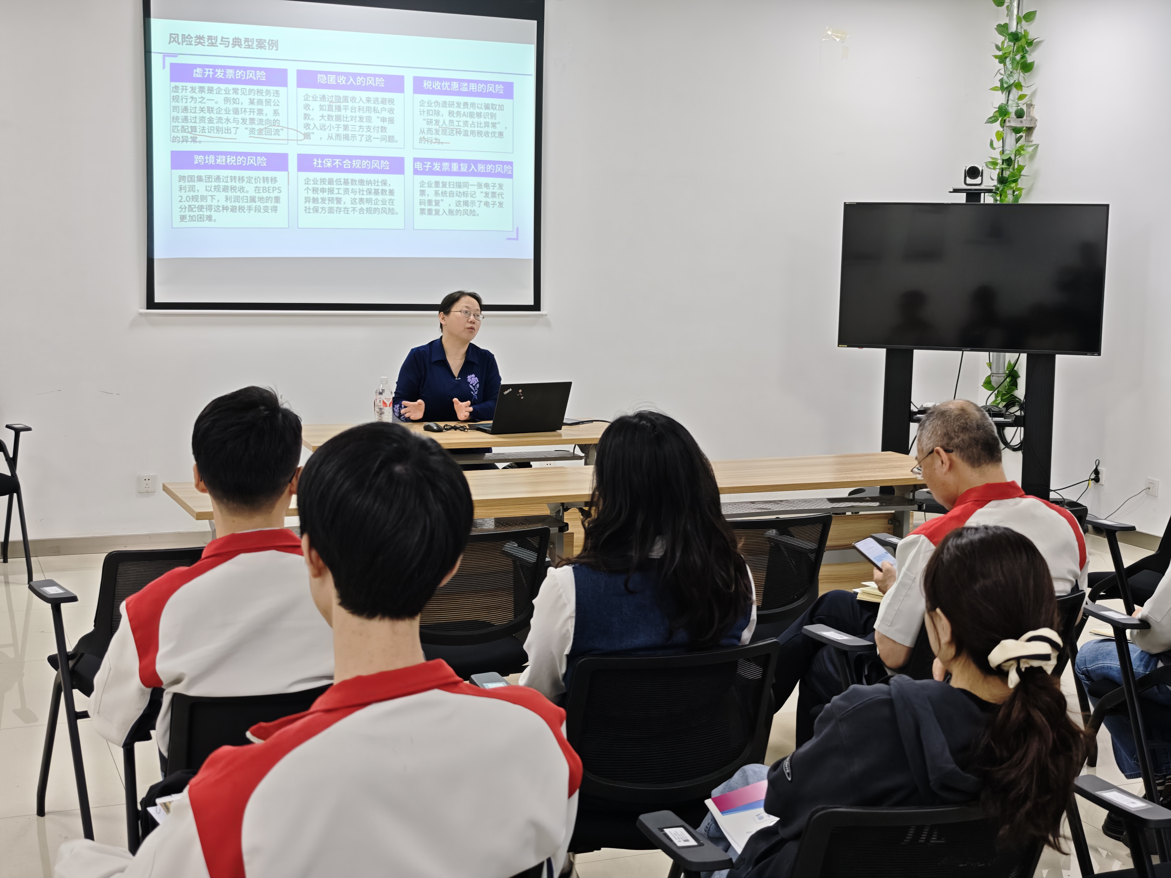 程瑶教授为长城汽车有限公司泰州分公司等链上6家企业负责人和财务负责人作了“以数治税环境下企业税收合规与风险管控”专题报告。