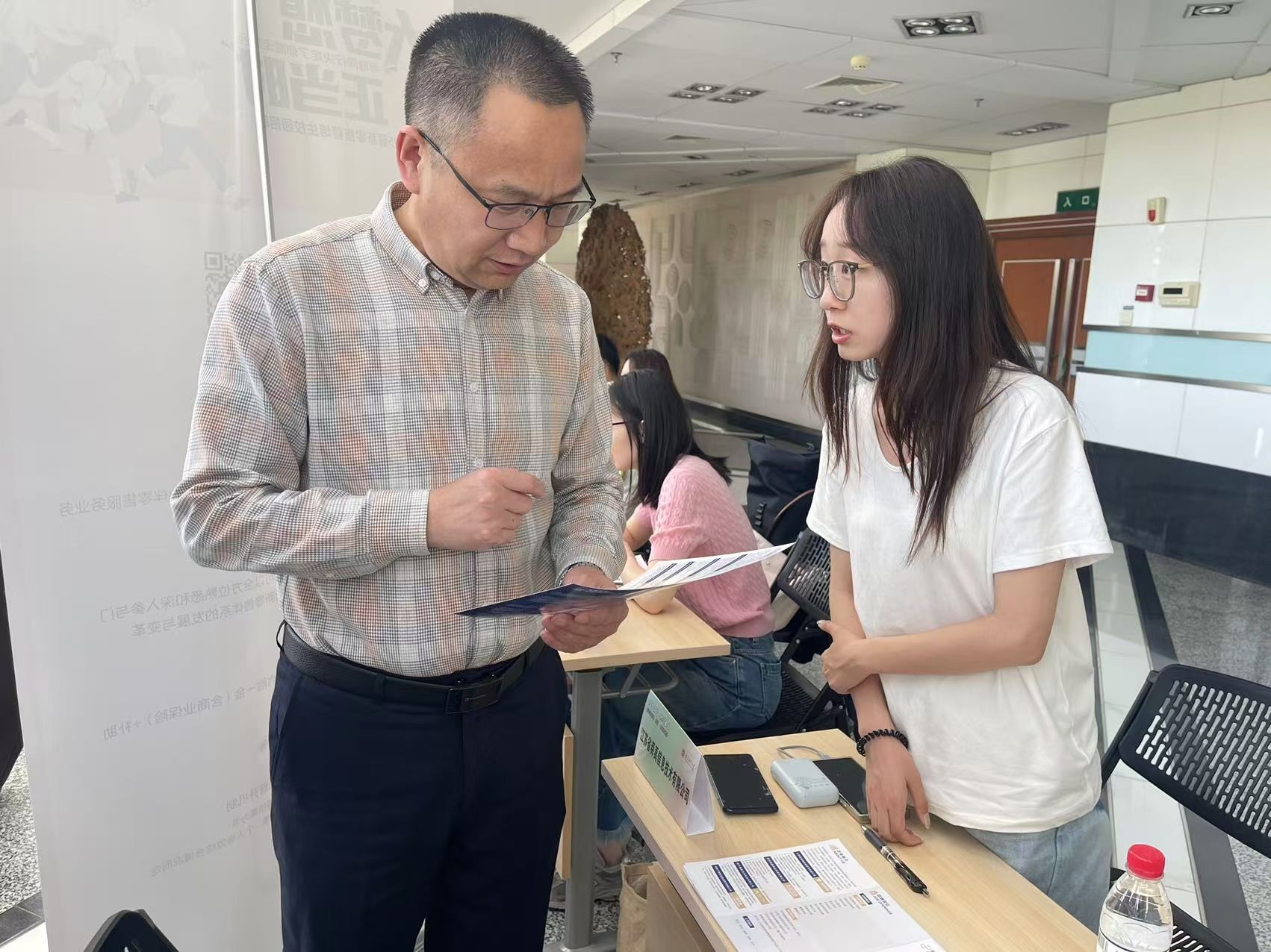 本次招聘会吸引了南京亚欧通讯设备有限公司、江苏先声药业有限公司、江苏大众书局图书文化有限公司、南京银都奥美广告有限公司等27家优质企业参加,涵盖设计、市场营销、新闻传媒、翻译等多个领域,提供500余个岗位,包括运营管培生、医药营销专员、外贸客服、游戏建模师、短视频导演等多种类型,充分满足了不同专业毕业生的求职需求。招聘会现场气氛热烈,毕业生们手持精心准备的简历,积极与企业招聘人员沟通交流。他们详细了解企业的发展情况、岗位要求、薪资待遇等信息,并结合专业优势和职业规划,向心仪的企业投递简历。为了更好地服务毕业生,招聘会现场还设置了多个服务区域。