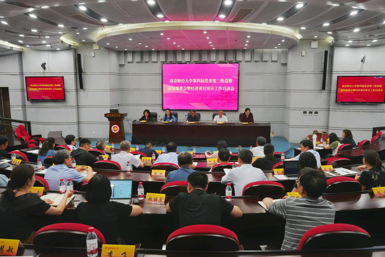 5月14日下午,学校第四届党委第三轮巡察动员部署会暨经济责任审计工作启动会在仙林校区行政楼二楼报告厅召开。校党委副书记、巡察工作领导小组副组长李群,纪检监察组组长、纪委书记、巡察工作领导小组副组长、审计委员会副主任李茜,党委常委、副校长、审计委员会副主任姚文韵,党委常委、组织部部长、巡察工作领导小组成员吕戎,党委常委、统战部部长、巡察工作领导小组成员李玉琴出席会议。被巡察单位党政领导班子成员、巡察组全体成员、巡察情况通报相关职能部门负责人、被审计领导干部、被审计单位党政主要负责人、审计联席会议成员单位负责人、巡察办和审计处工作人员参加会议。会议由李茜组长主持。