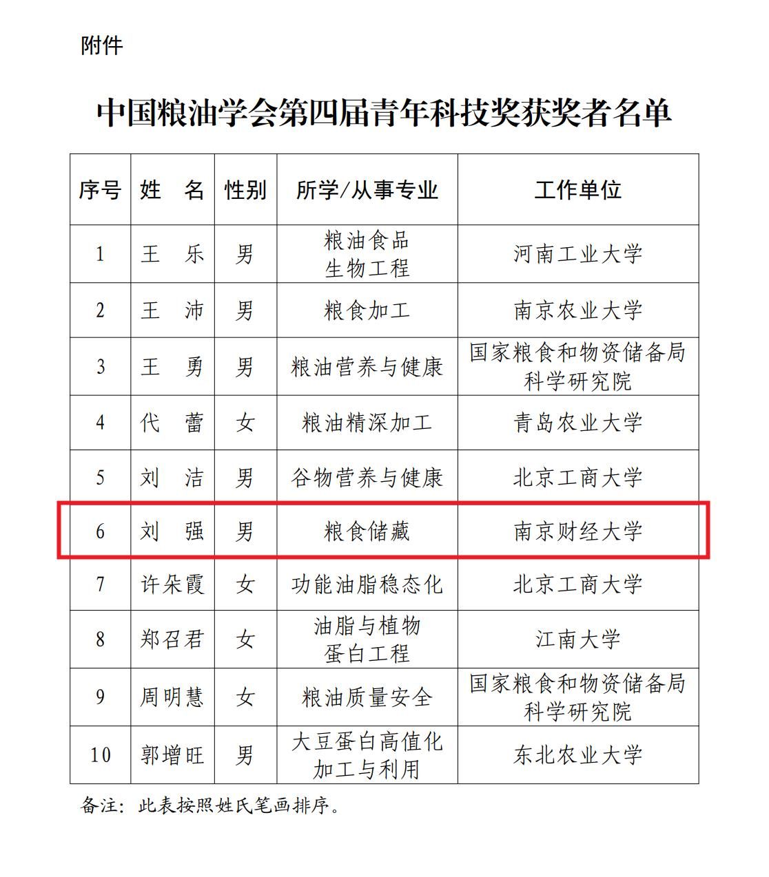 5月26日,中国粮油学会第四届青年科技奖获奖者名单公布。经单位推荐、形式审查、专家初评、综合评审、评审结果公示、奖励委员会审定等程序,金年会食品科学与工程学院刘强副教授成功入选。
