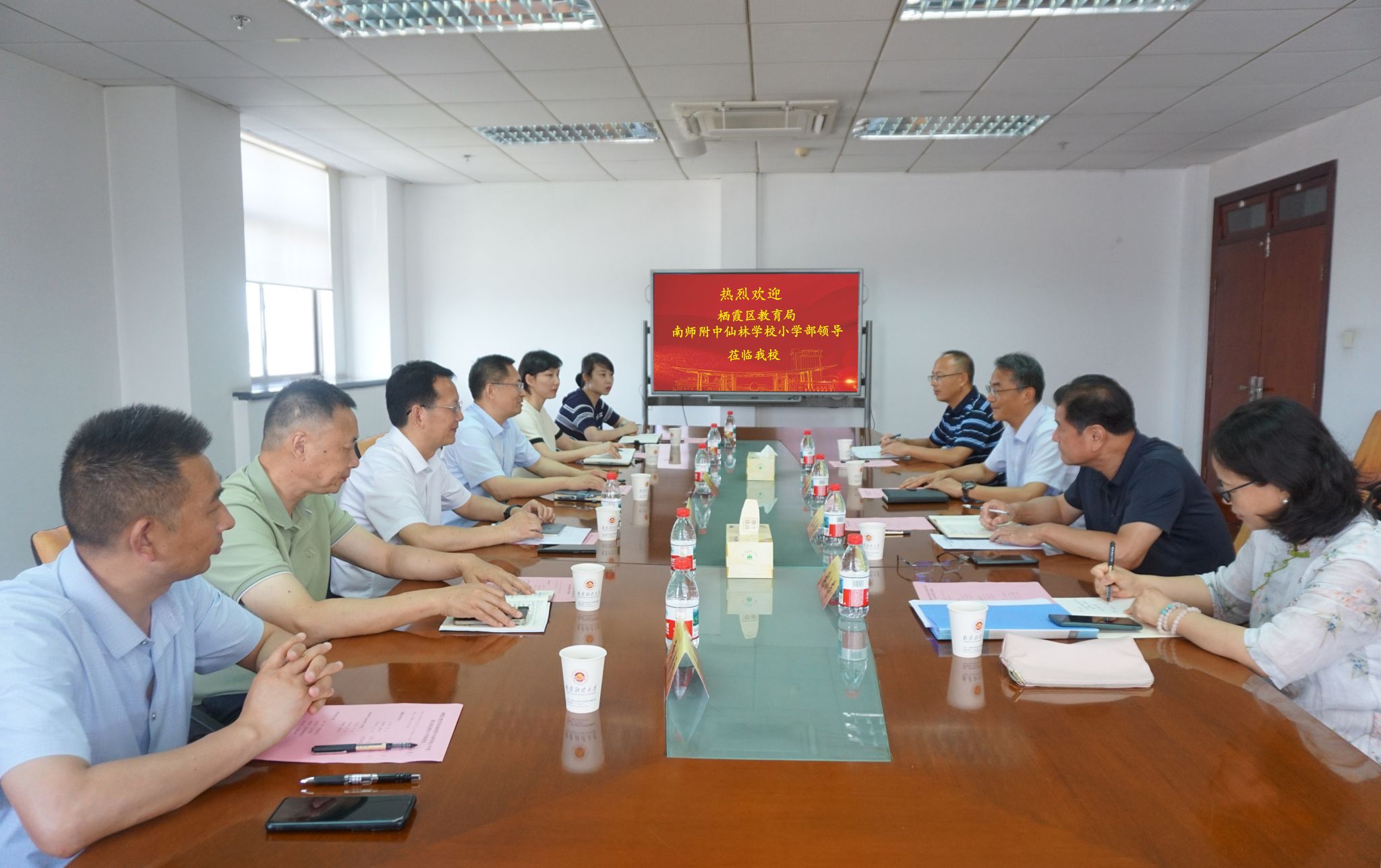 6月17日上午,栖霞区教育局局长倪天华一行来金年会调研交流,调研交流会在仙林校区行政楼1201会议室召开。校党委副书记李群,栖霞区教育局局长倪天华、副局长陈婷婷,南师附中仙林学校小学部书记肖全胜、校长朱永刚、副校长季春雷出席会议,栖霞区教育局办公室、南师附中仙林学校小学部、金年会党委宣传部和工会相关领导参加会议。