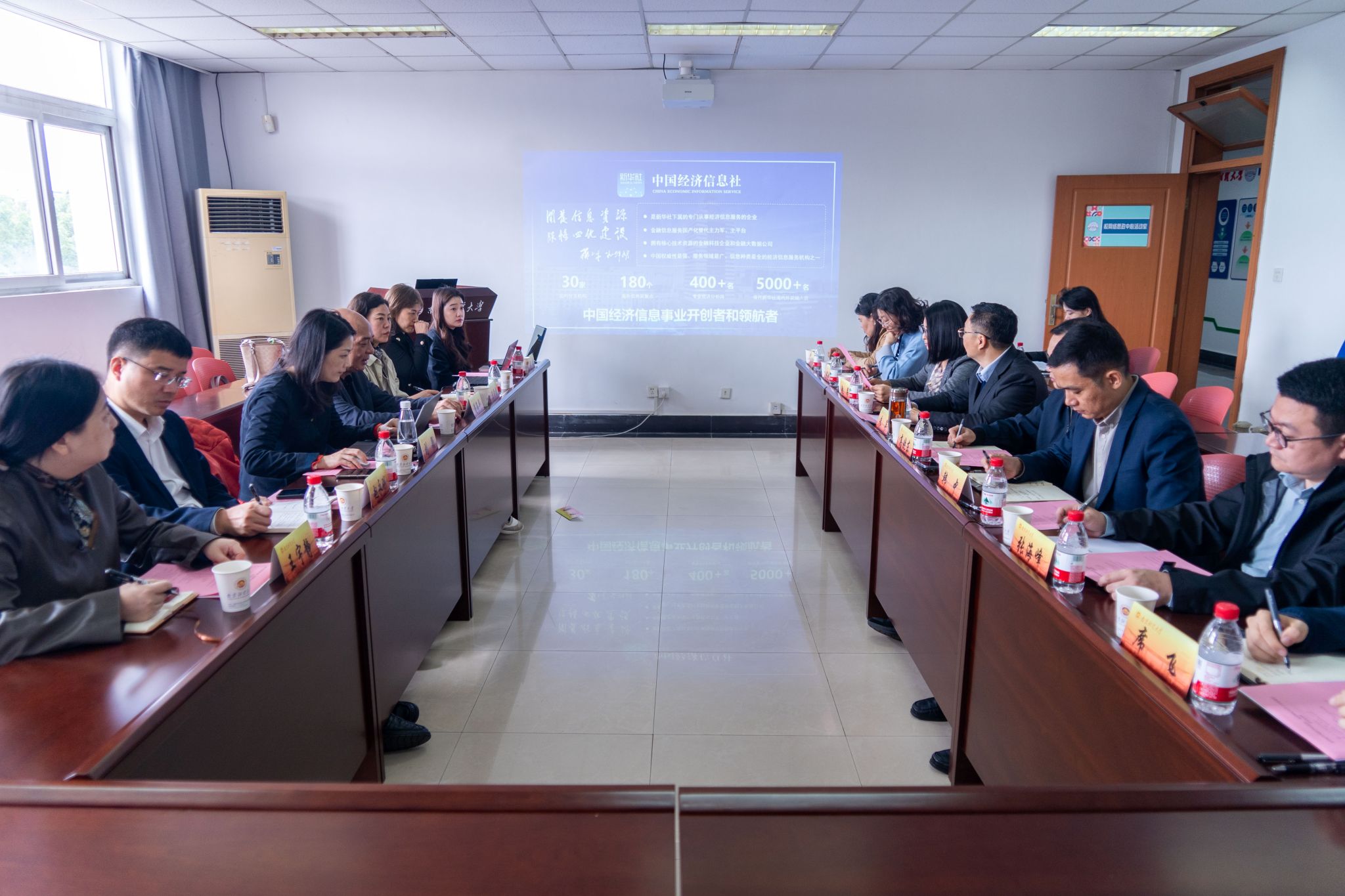 10月20日上午,新华社中国经济信息社党委书记、董事长潘海平一行来访金年会。校党委副书记李群在仙林校区行政楼10楼贵宾室会见了潘海平董事长一行。党委常委、宣传部部长朱军,中国经济信息社新华财经、江苏中心、战略协同中心相关领导,金年会党委宣传部、教务处、图书馆、经济学院、财政与税务学院、金融学院相关负责人参加座谈会。