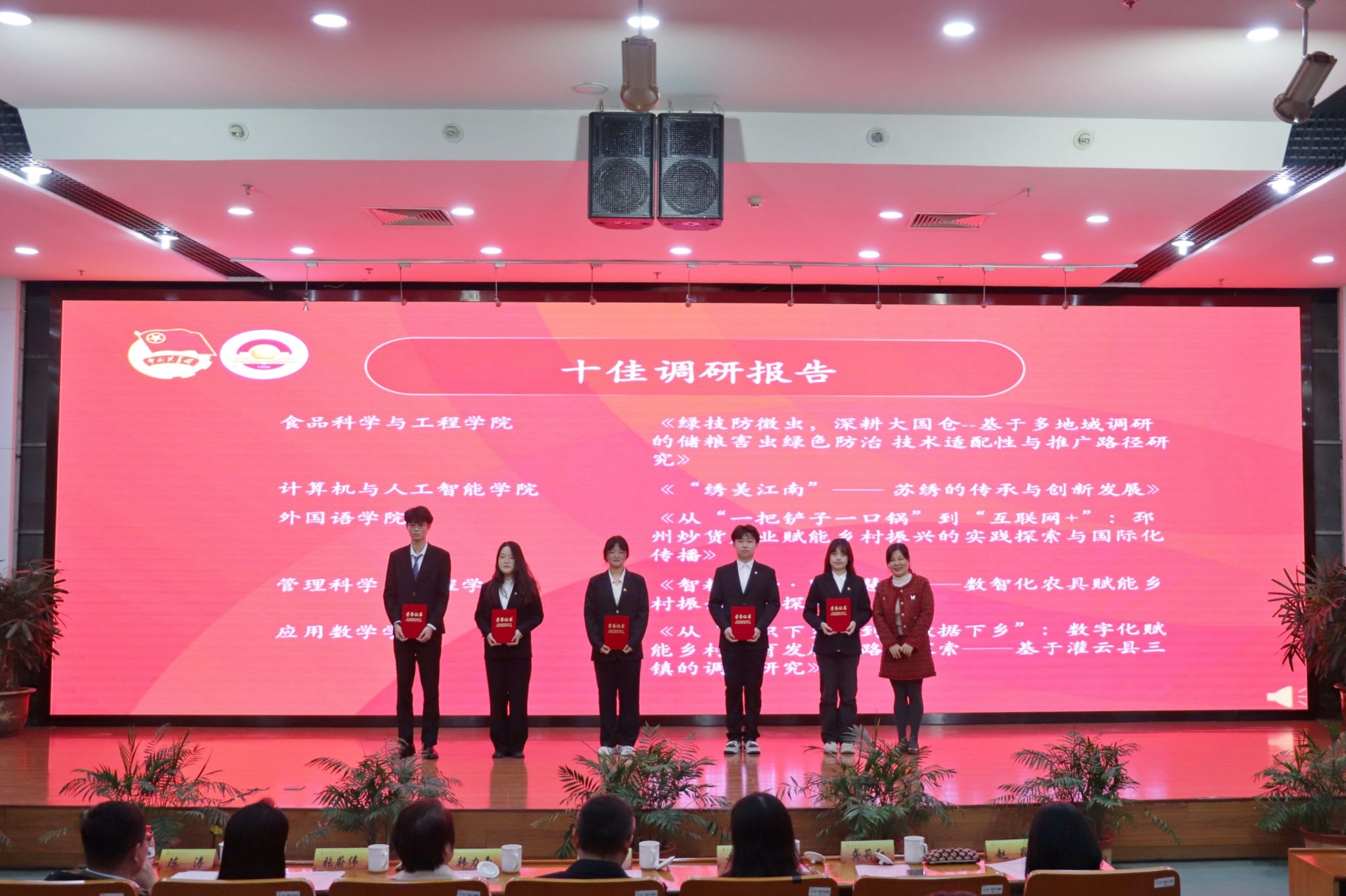 10月30日中午,金年会2025年暑期“三下乡”社会实践总结表彰大会在仙林校区图书馆一楼报告厅召开。党委常委、副校长赵国栋出席会议。党委宣传部、党委学生工作部、党委研究生工作部、教务处等相关部门负责人,各学院党委副书记、团委负责老师,校团委全体成员及受表彰师生代表参加会议。会议由校团委副书记(挂)盛业旭主持。